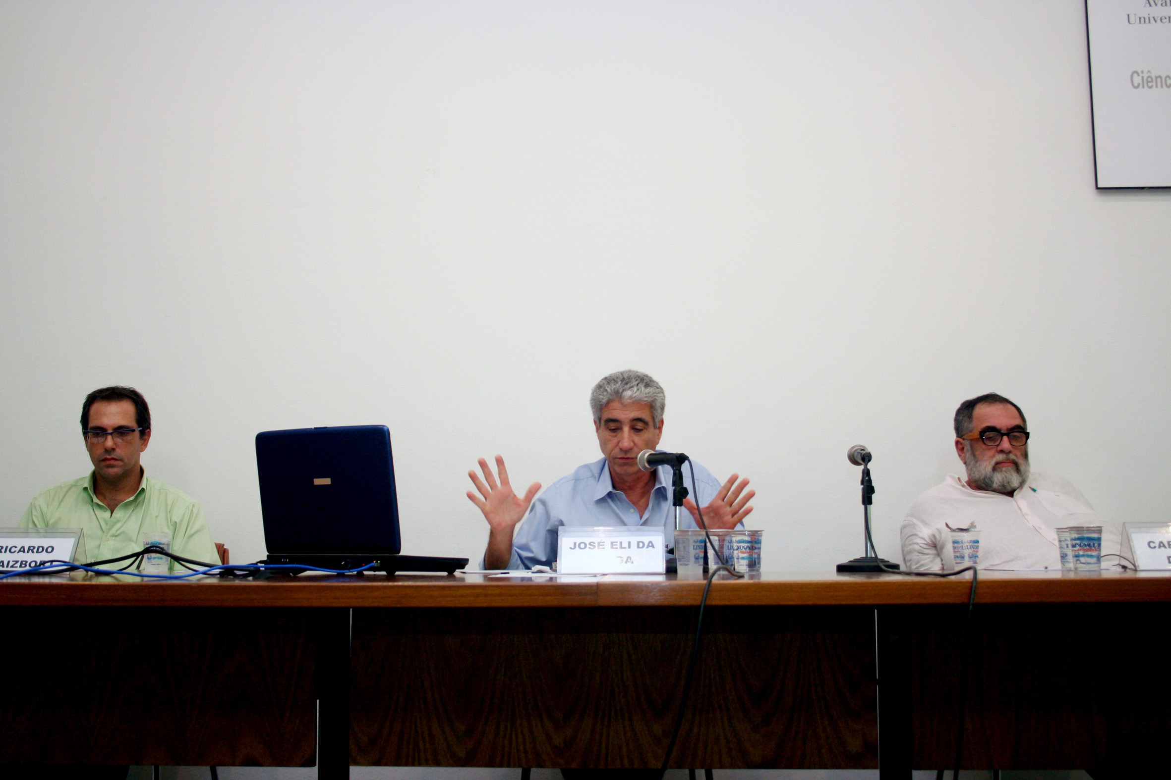 Ricardo Waizbort, José Eli da Veiga e Carlos Alberto Dória