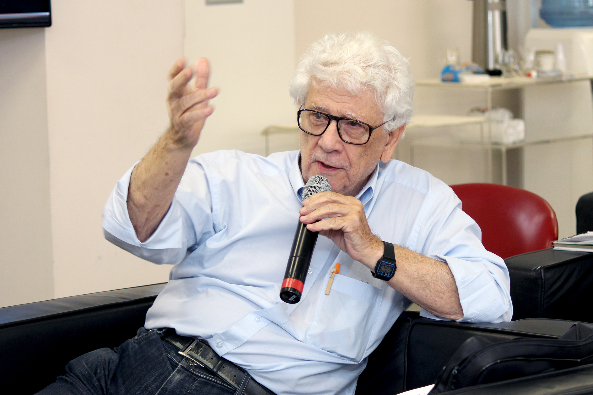 Haluo Hirata faz perguntas durante o debate