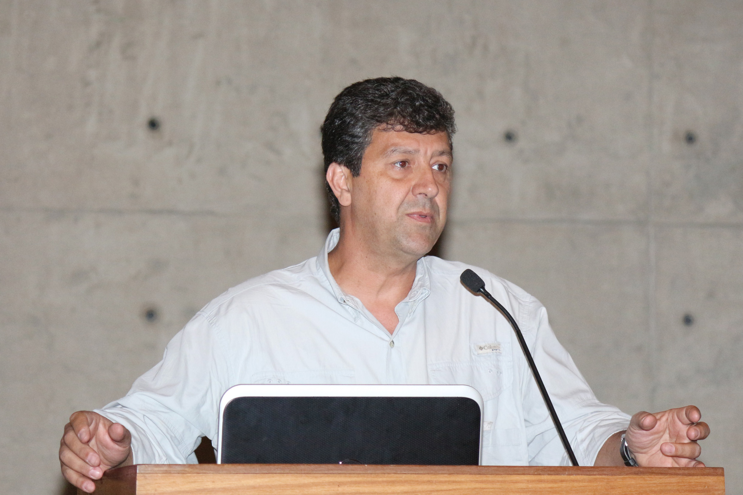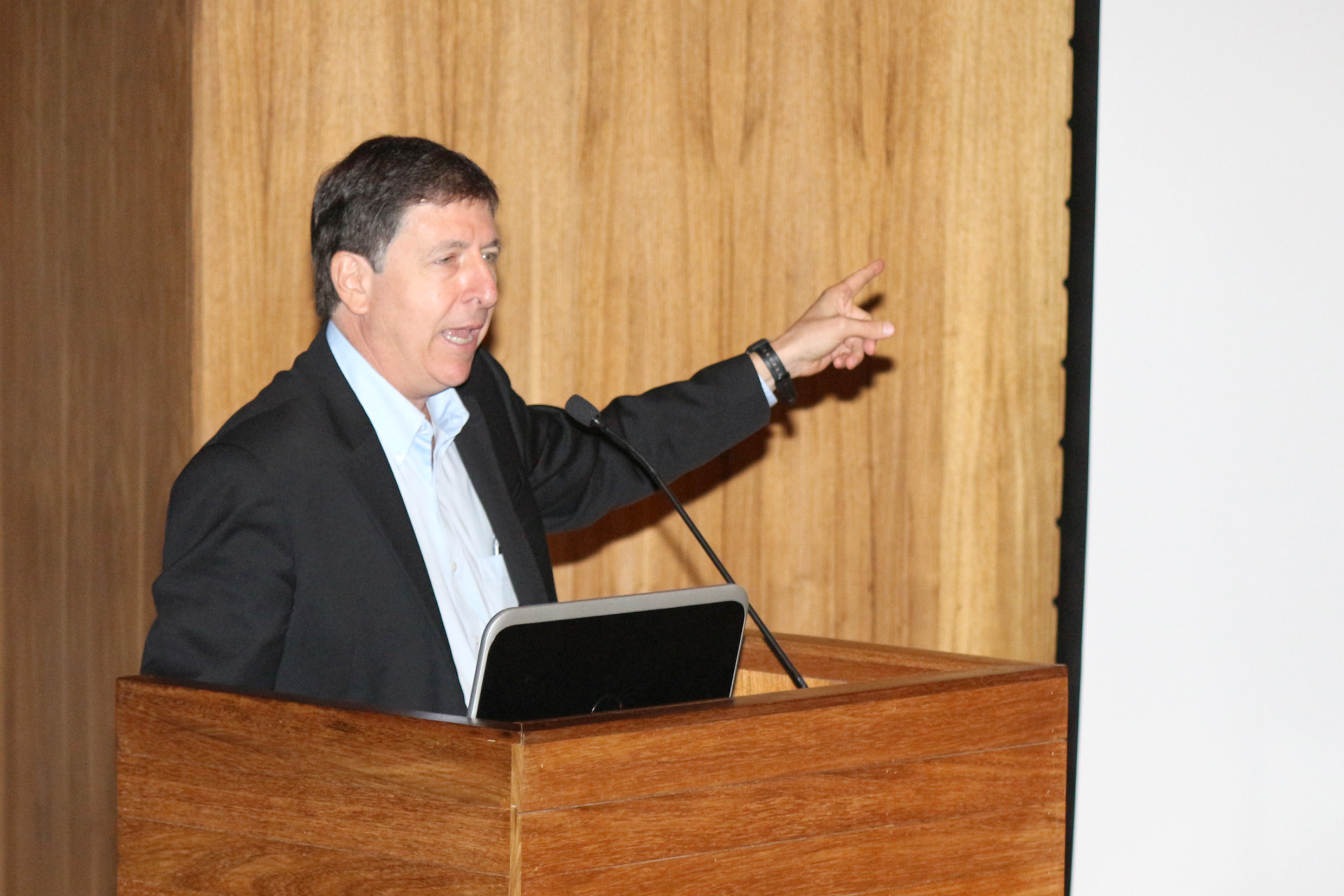Marcos Buckeridge faz perguntas aos expositores durante o debate