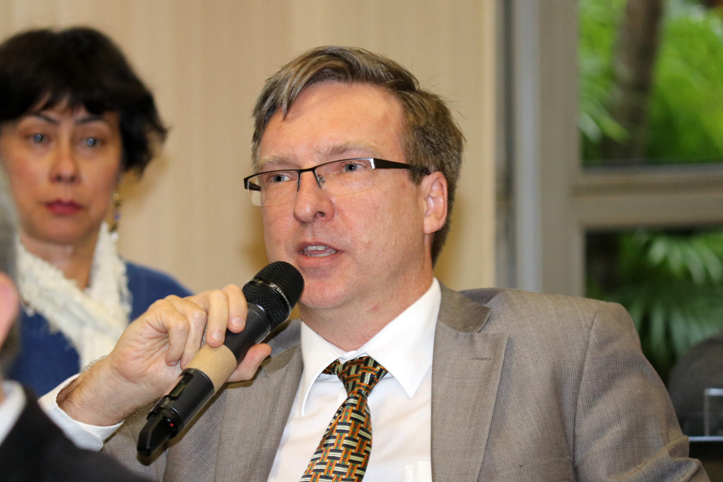Edmilson dos Santos faz perguntas aos expositores durante o debate