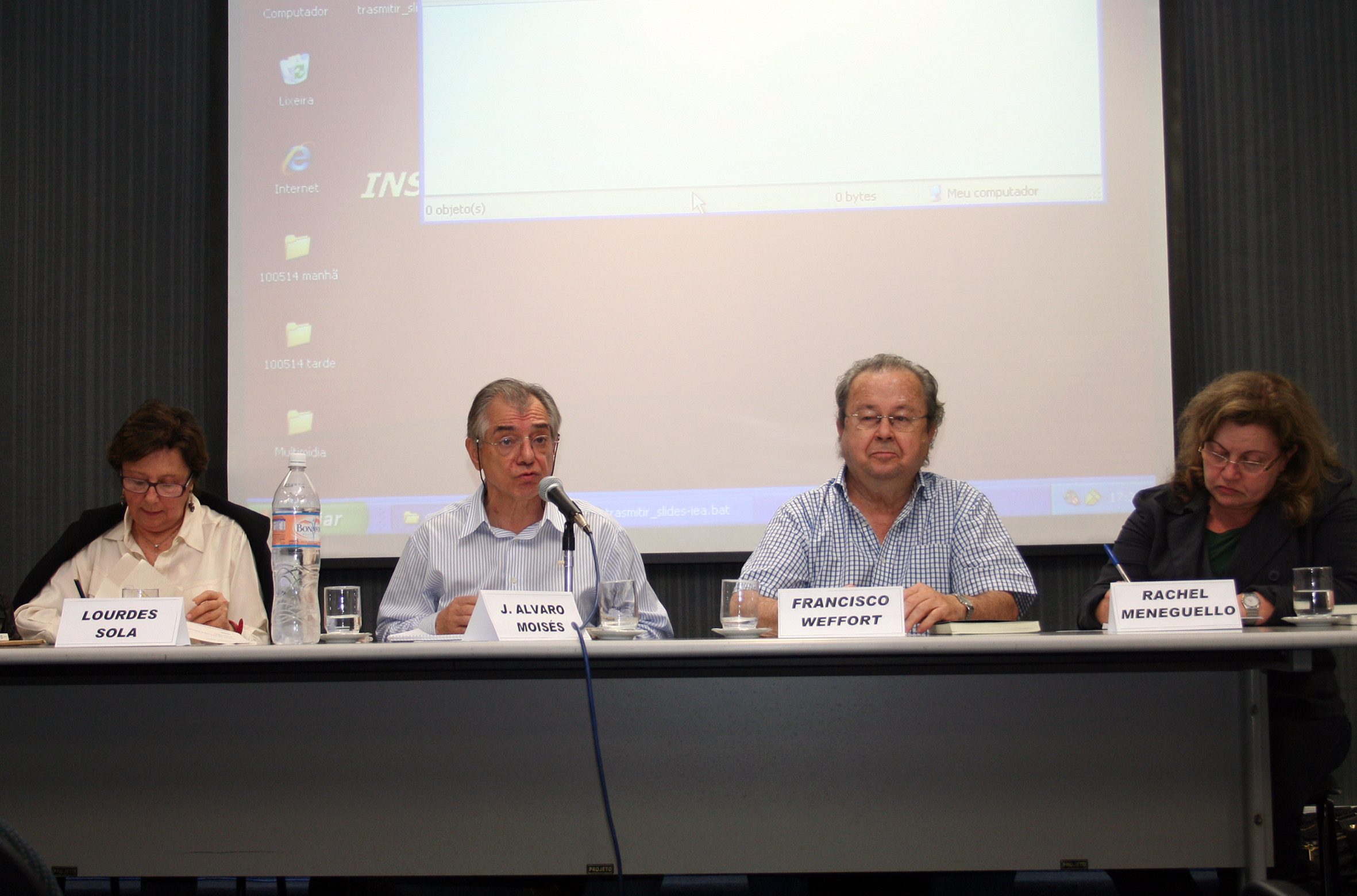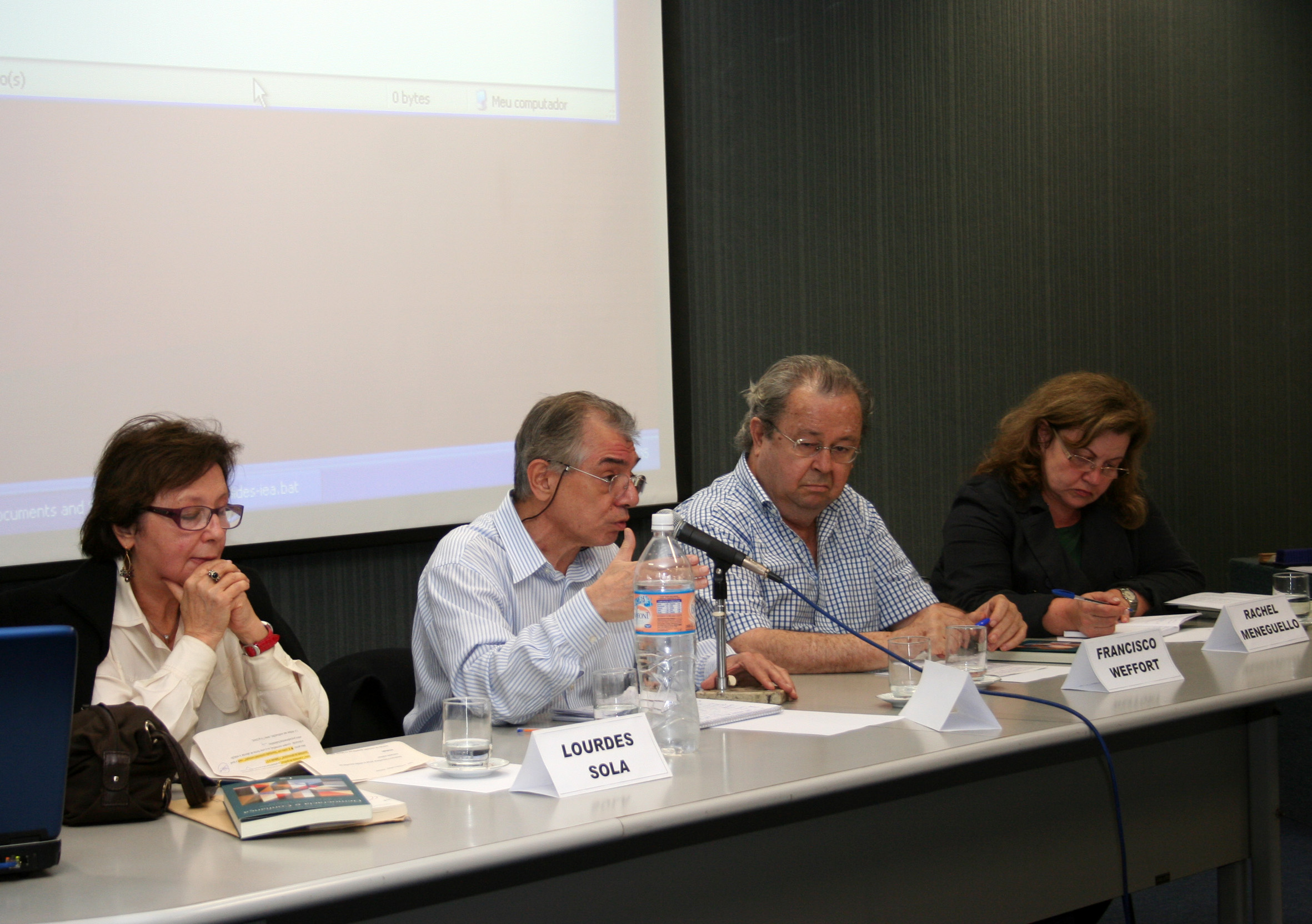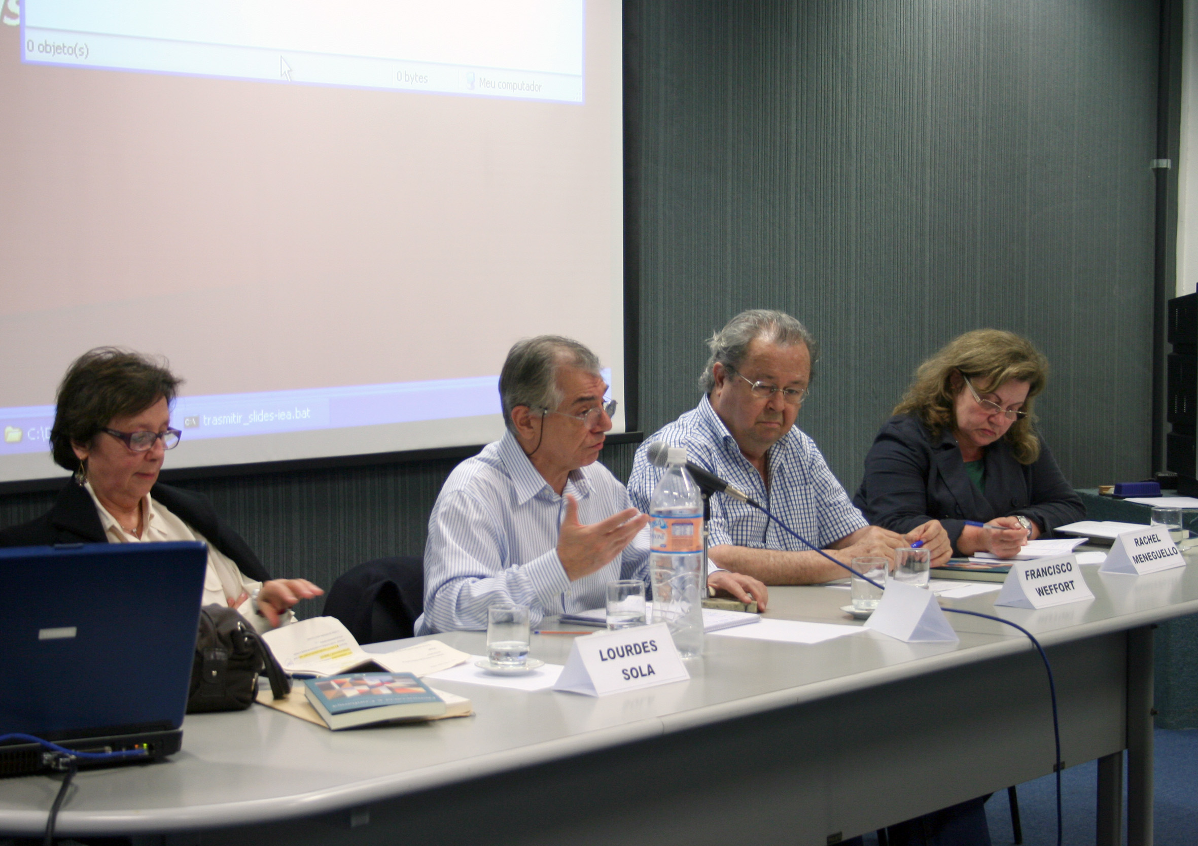 Lourdes Sola, José Álvaro Moisés, Francisco Weffort e Rachel Meneguello