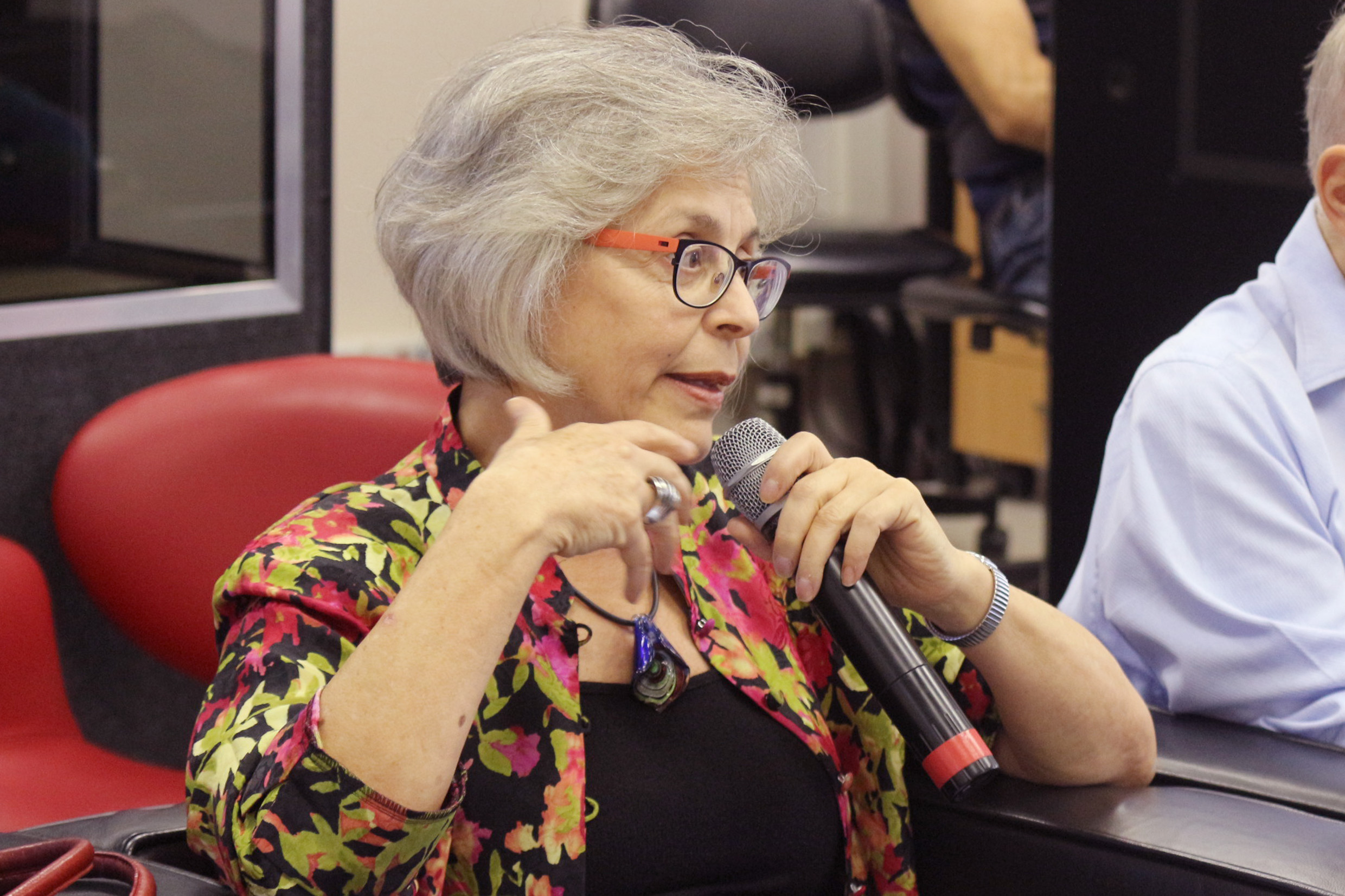Neli Aparecida de Mello-Théry faz perguntas ao expositor
