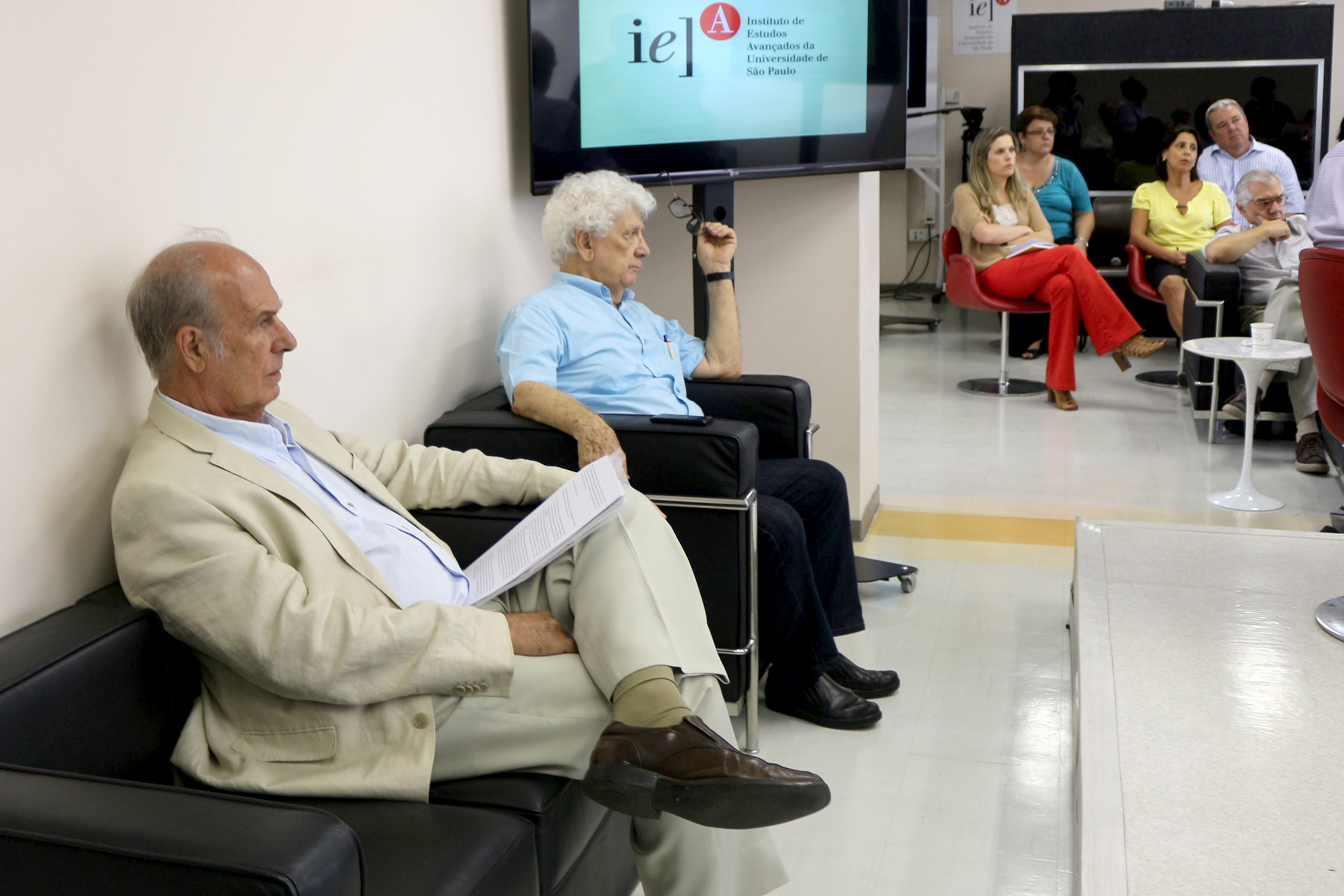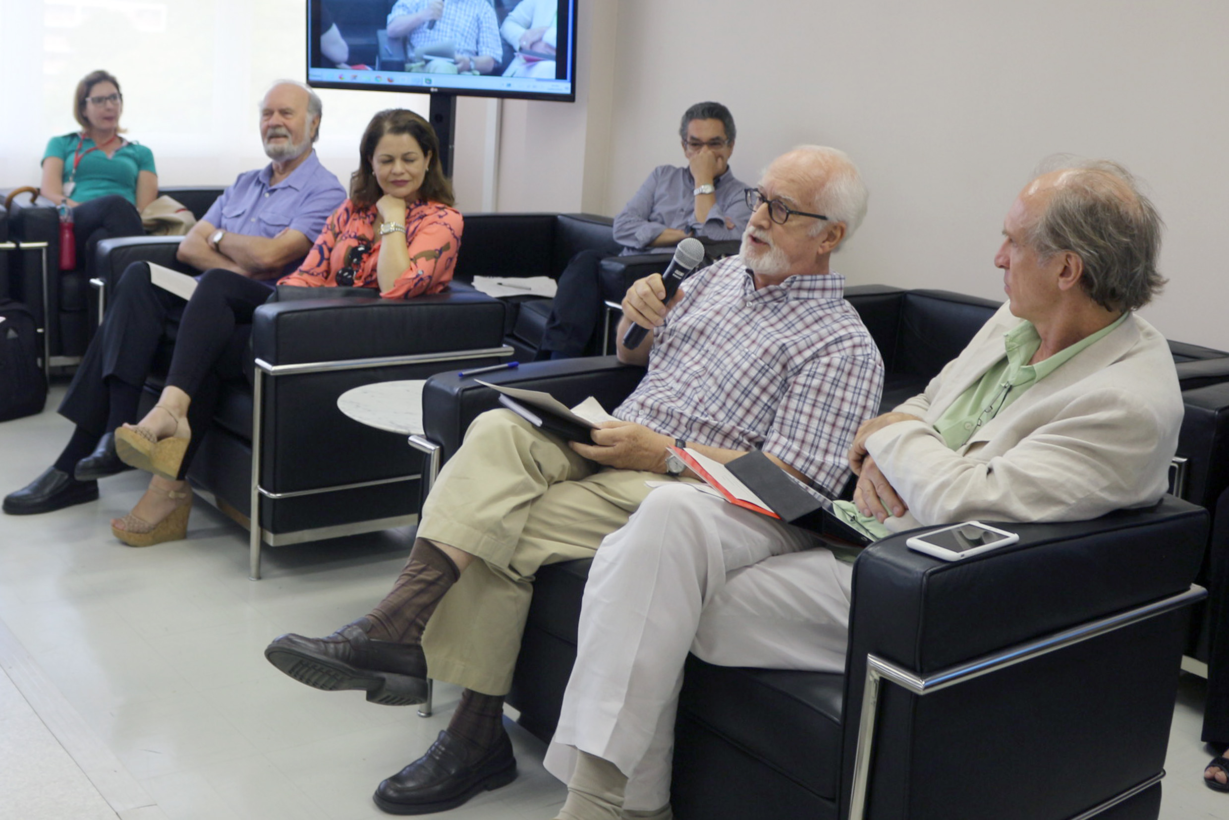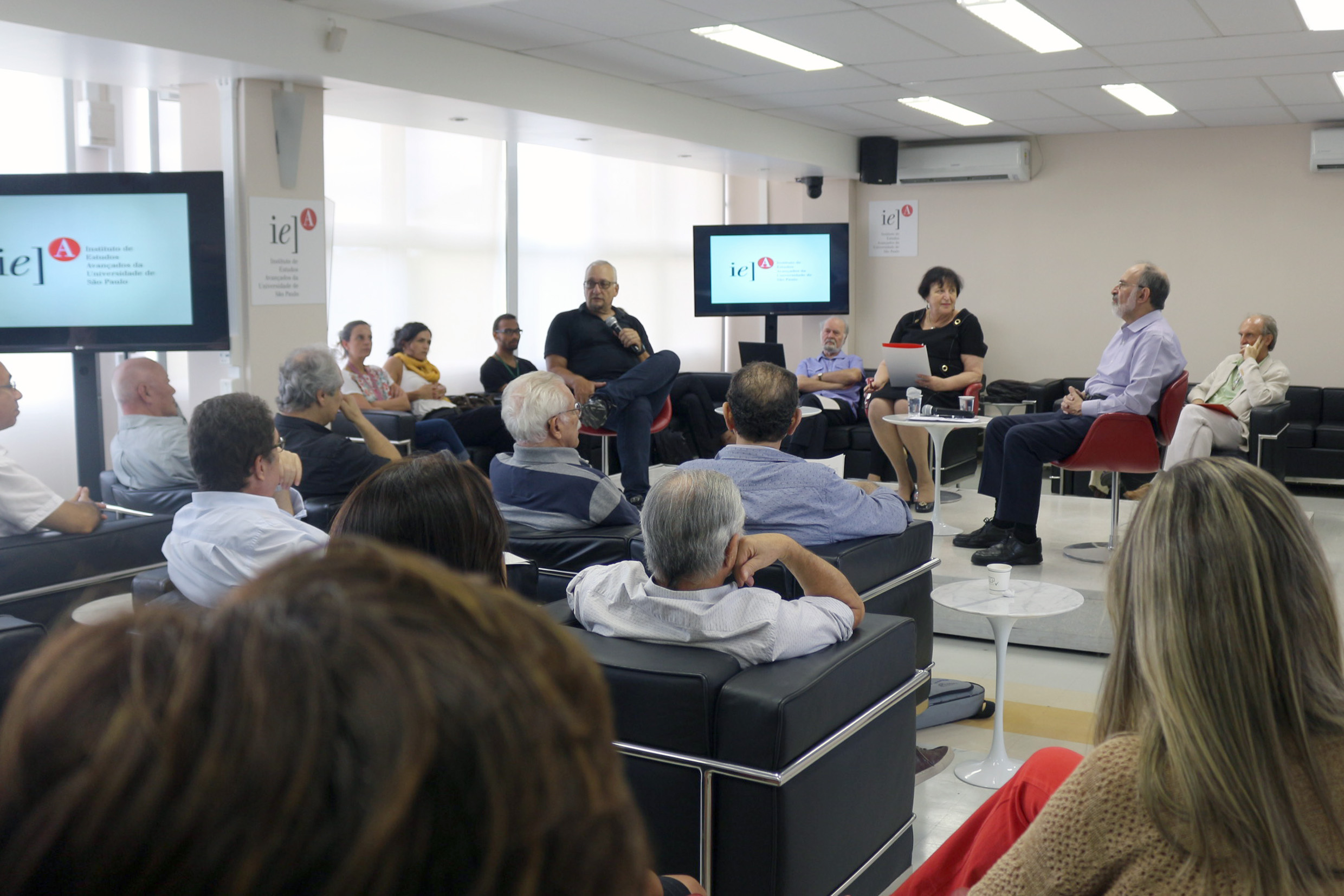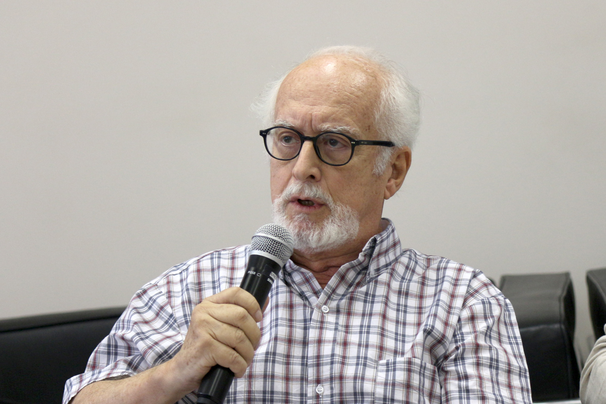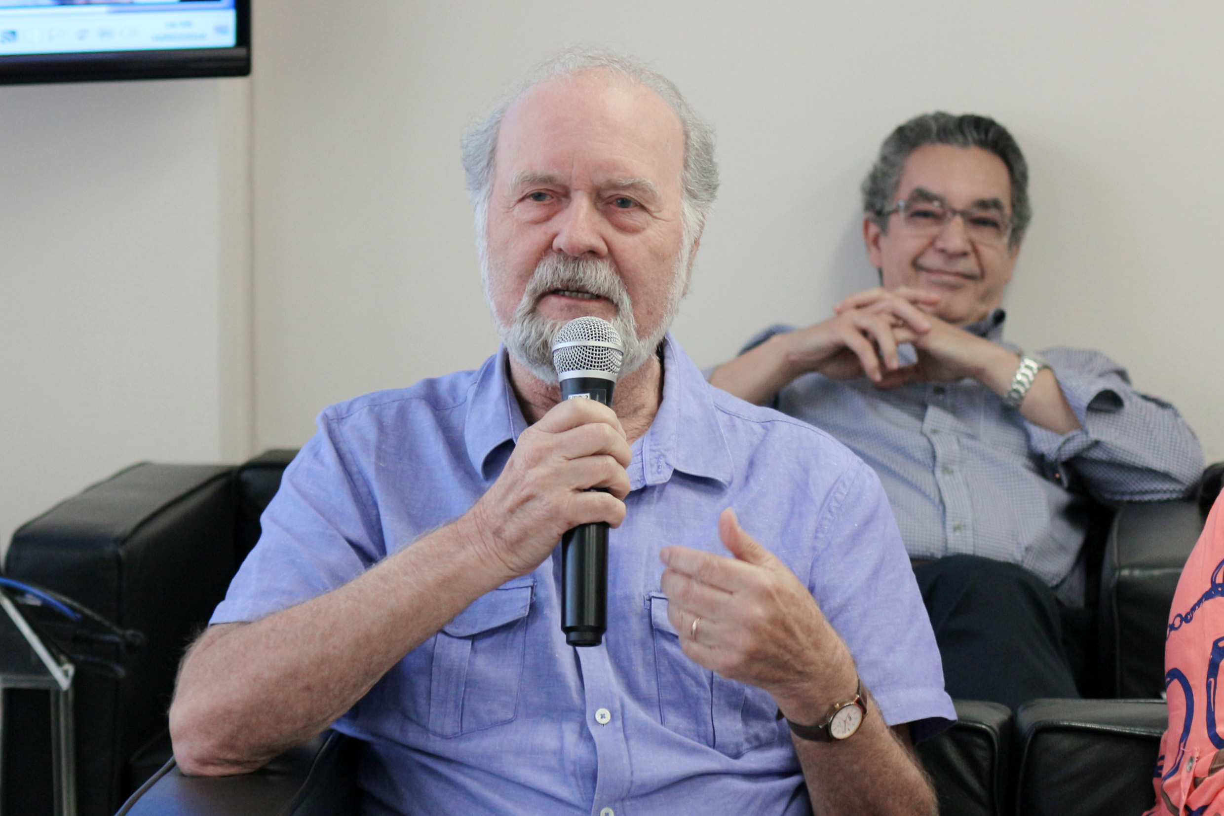 Carlos Guilherme Mota, primeiro diretor do IEA fala durante o debate