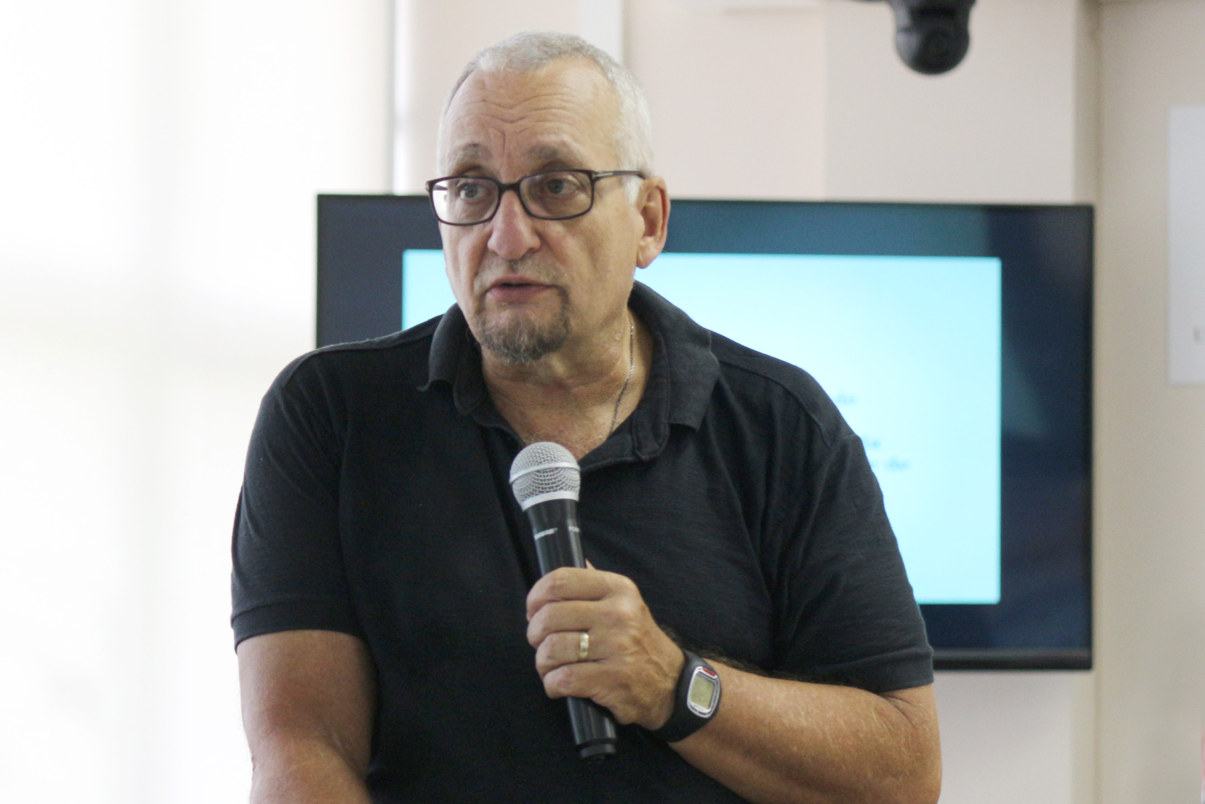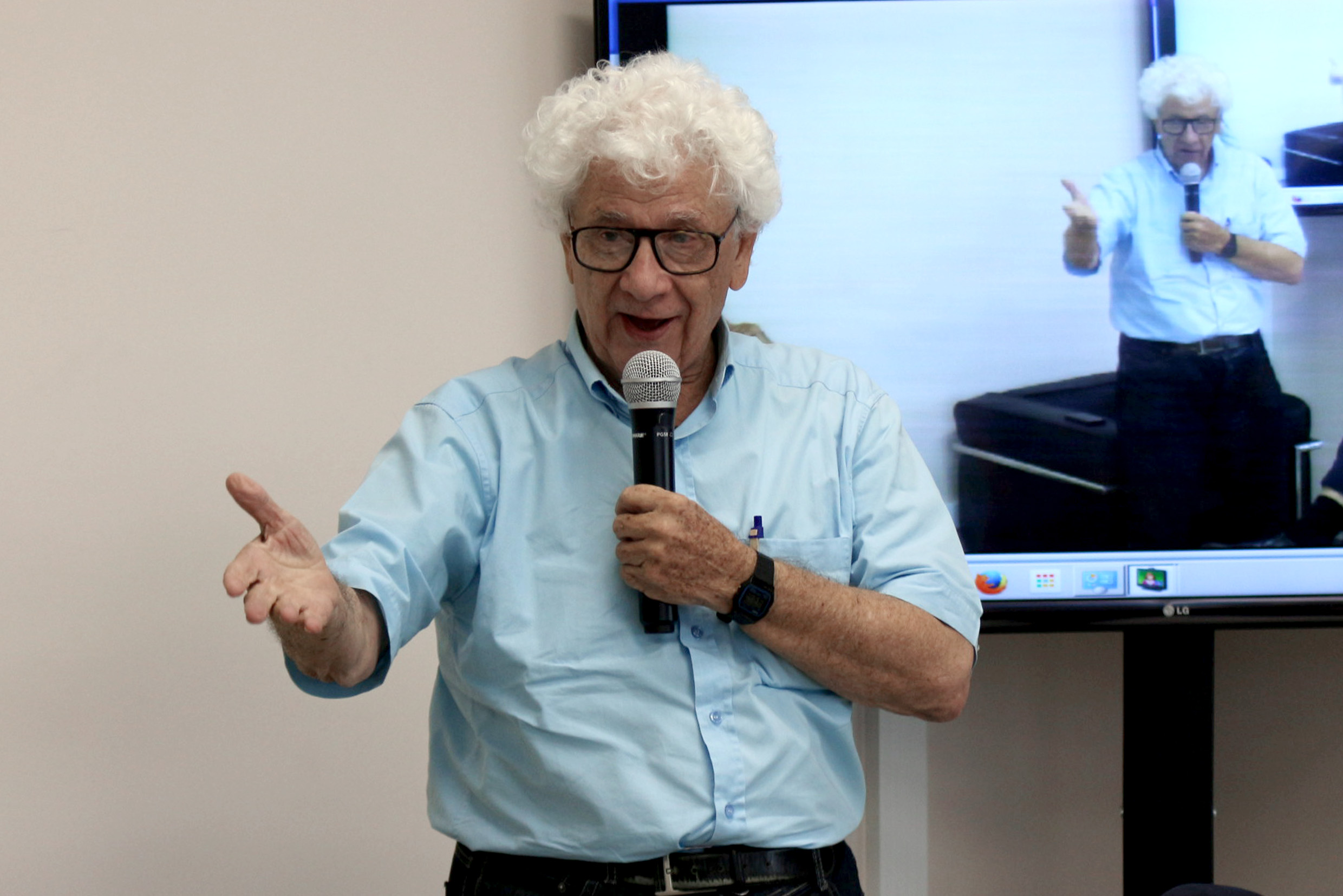 Carlos Alberto Barbosa Dantas faz perguntas aos expositores