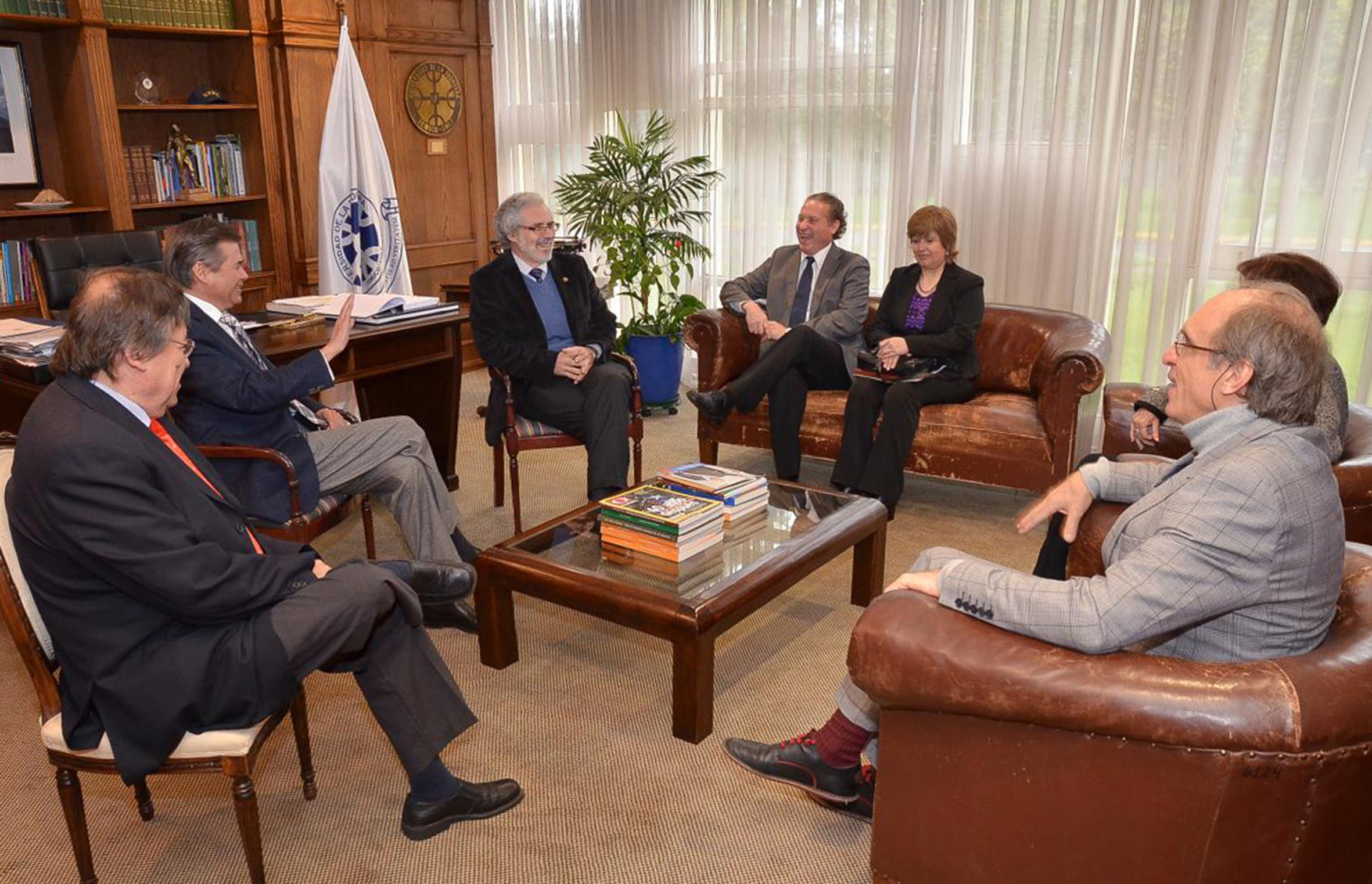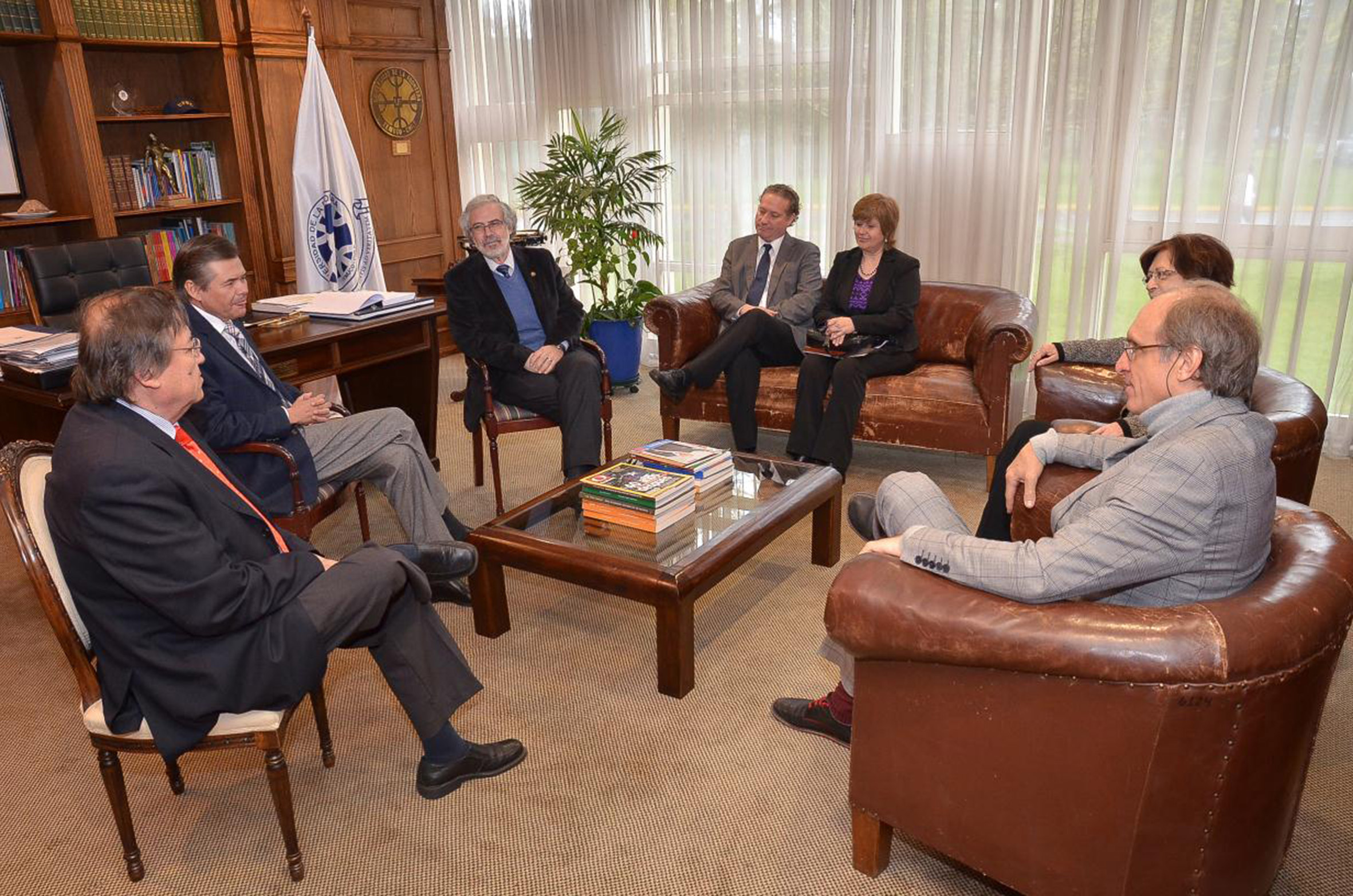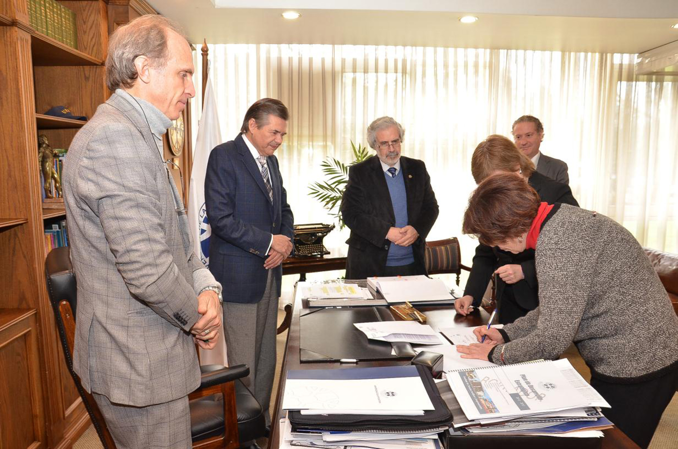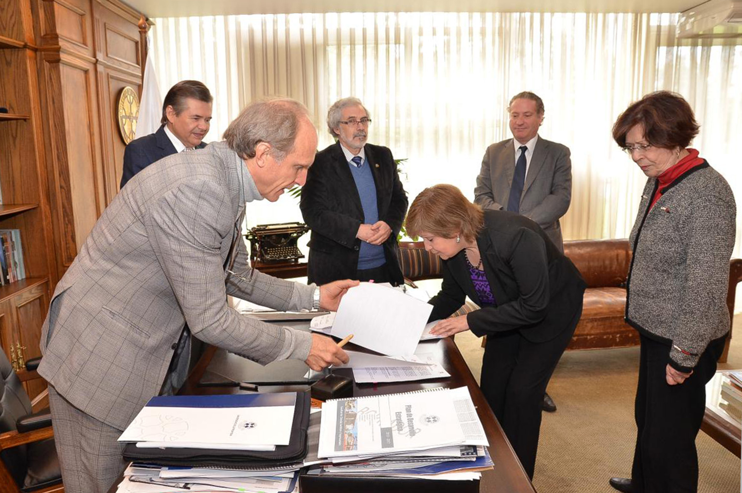 A partir da esquerda de costas, Sergio Bravo Escobar, Raúl Sánchéz Gutiérrez, Hugo Zunino Edelsberg, Marianela Denegri Coria, Maria Helena Capelato, Martin Grossmann e Ricardo Herrera Lara