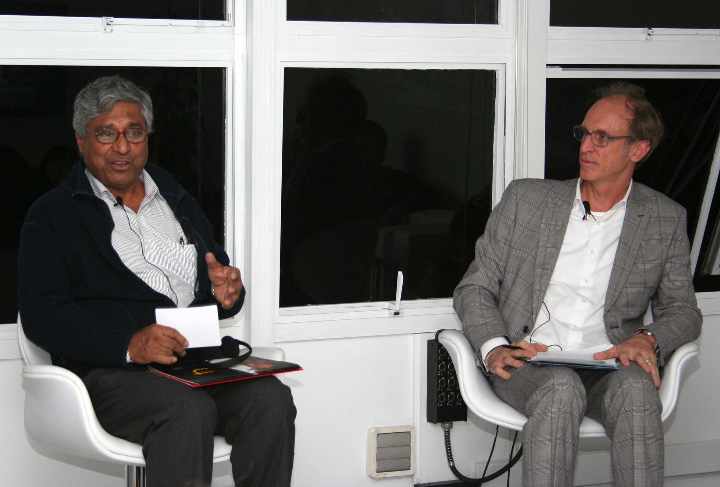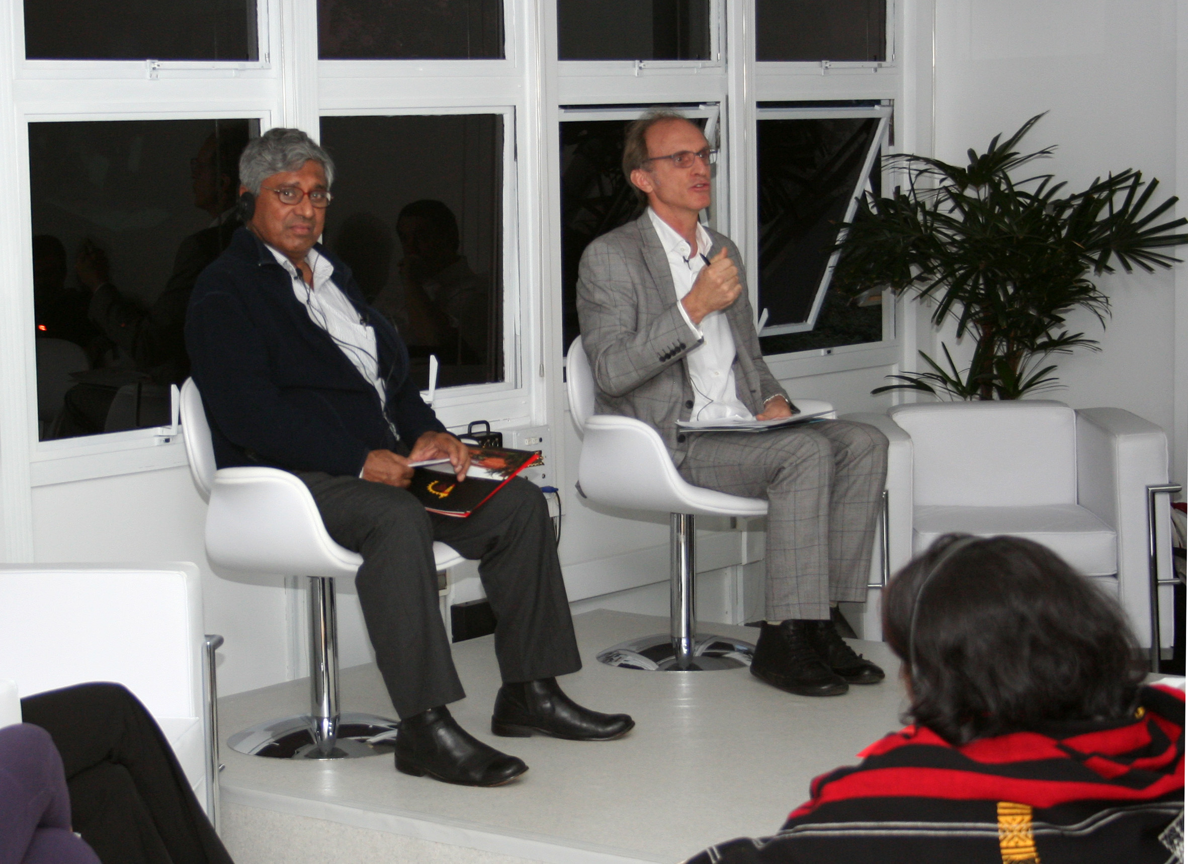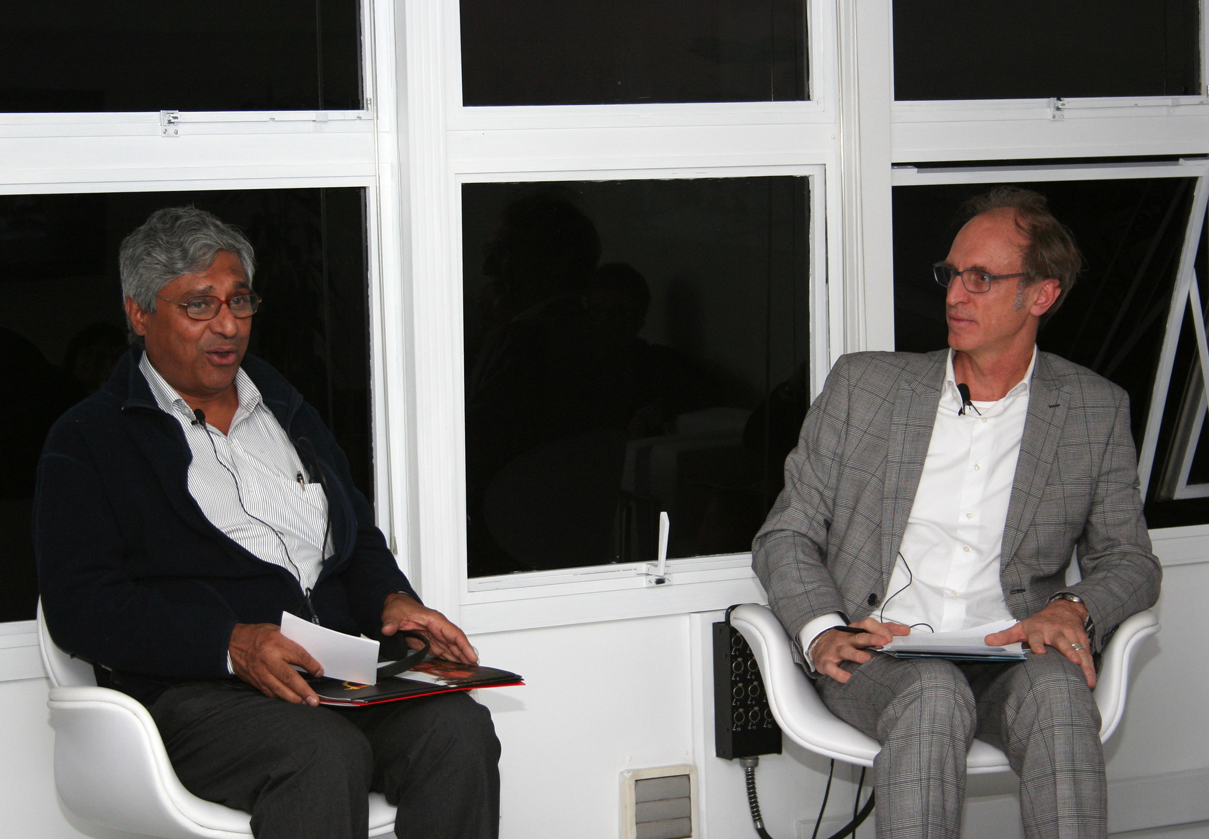 Aditya Mukherjee e Martin Grossmann na abertura do evento