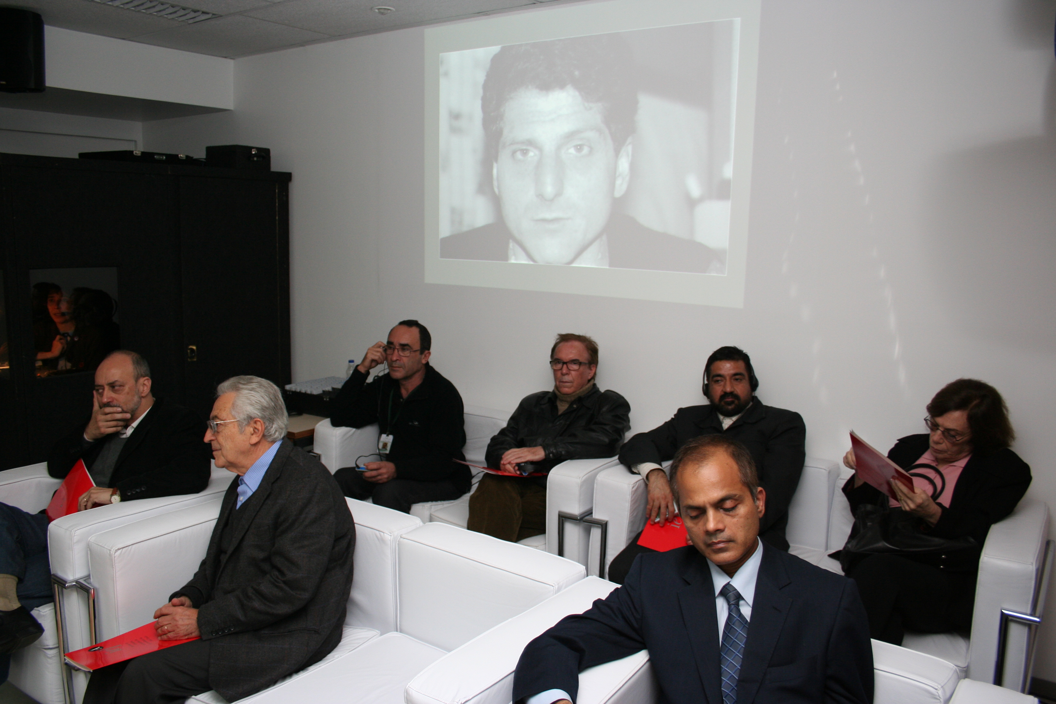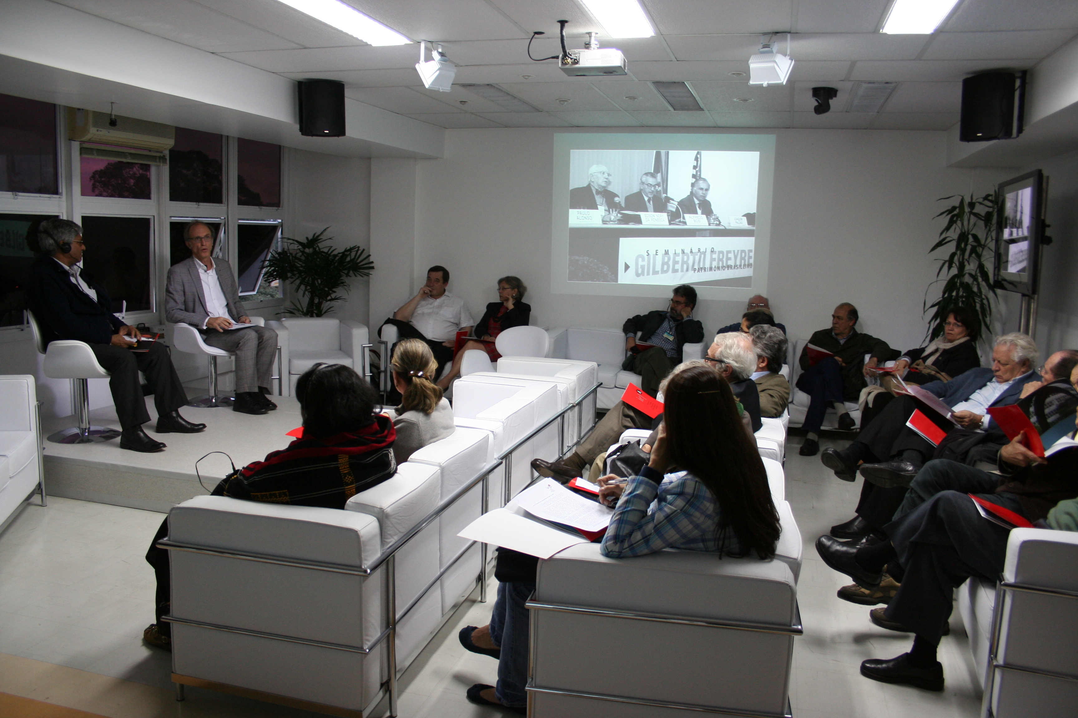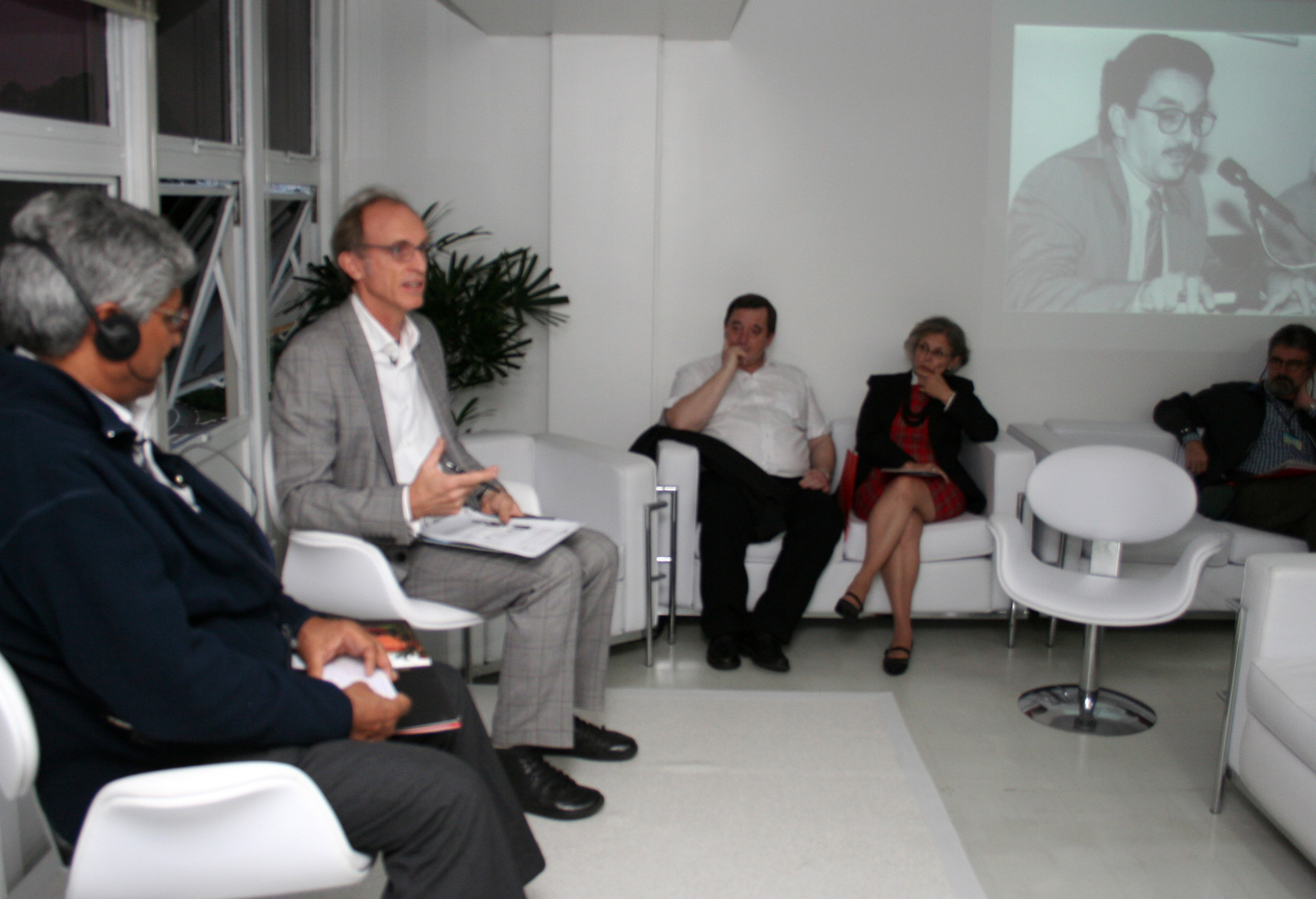Aditya Mukherjee e Martin Grossmann na abertura do evento