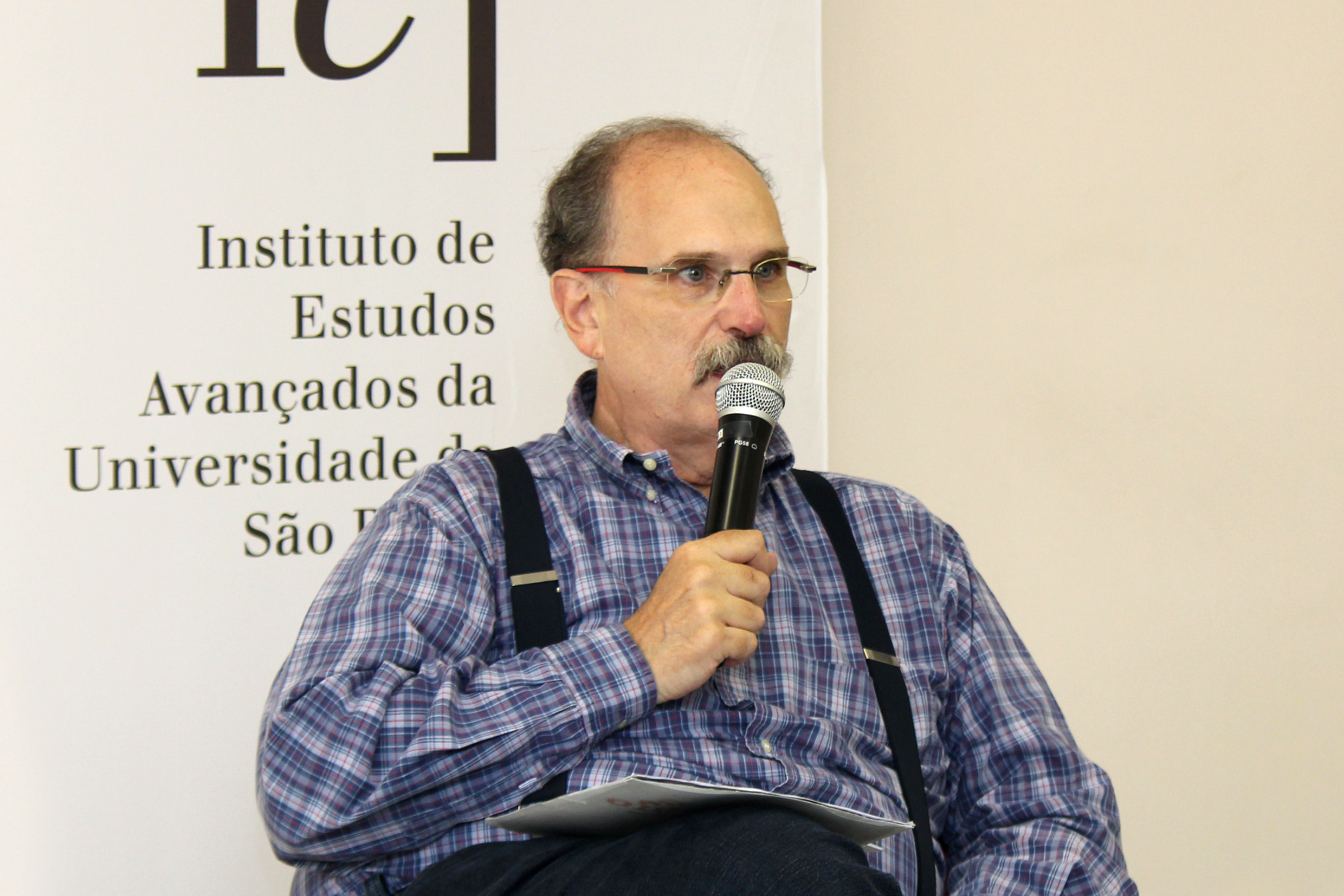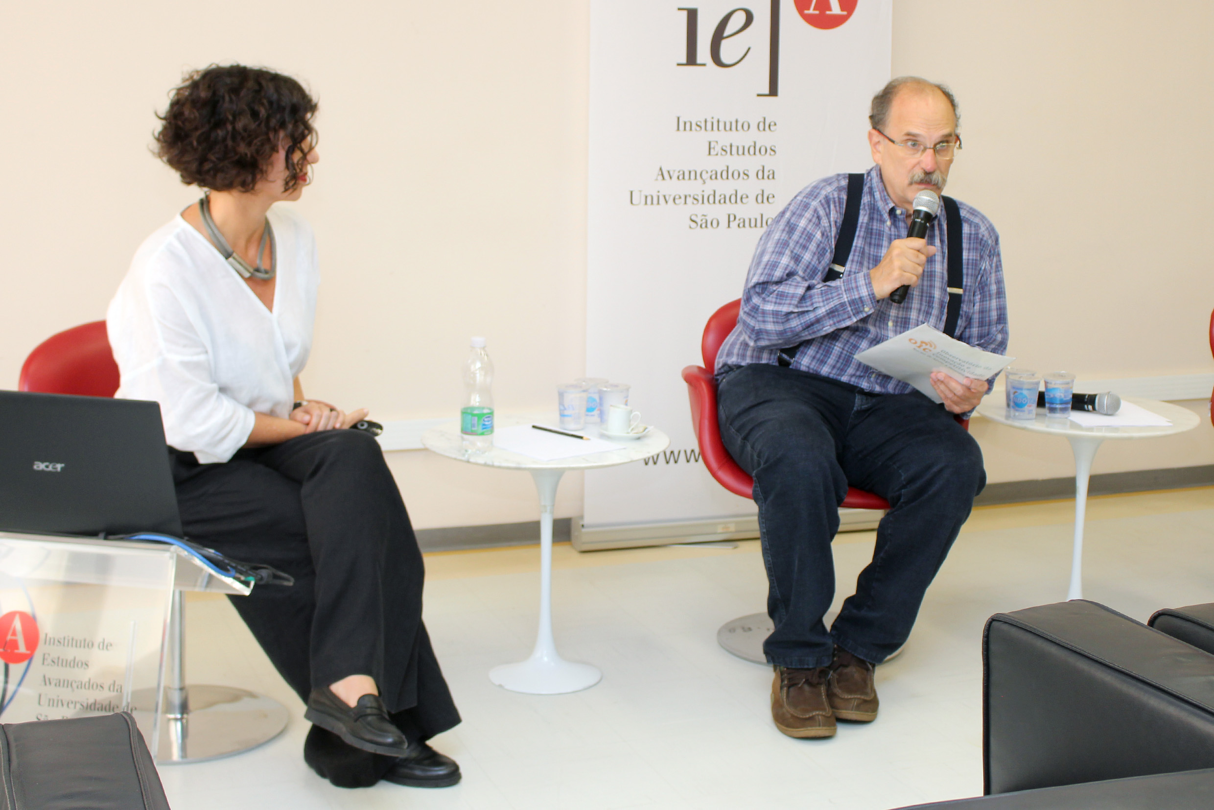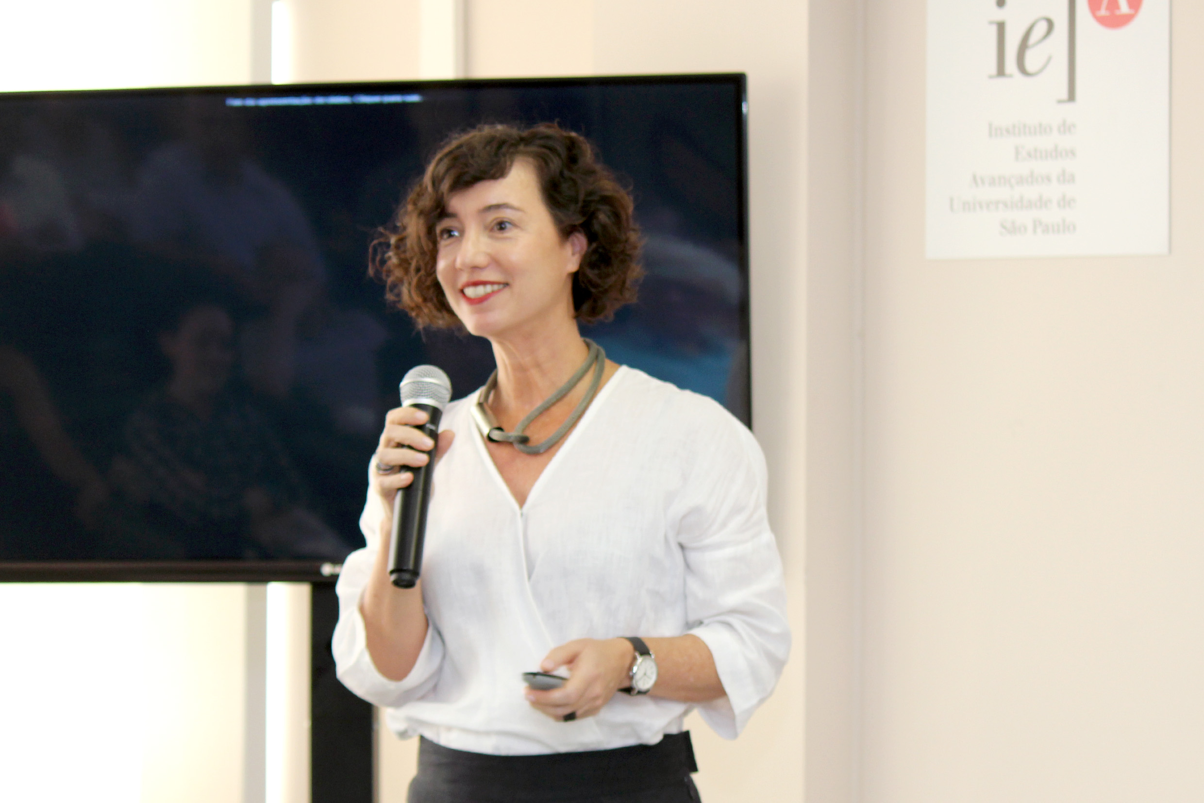 Glauco Arbix abre o evento e apresenta a expositora, Denise Golgher