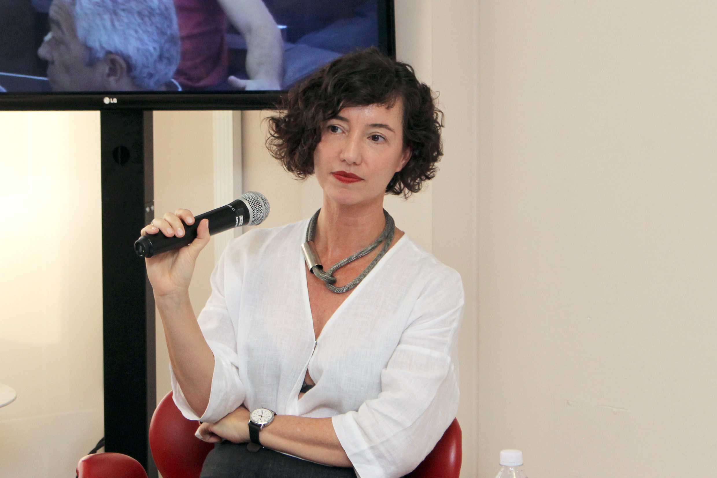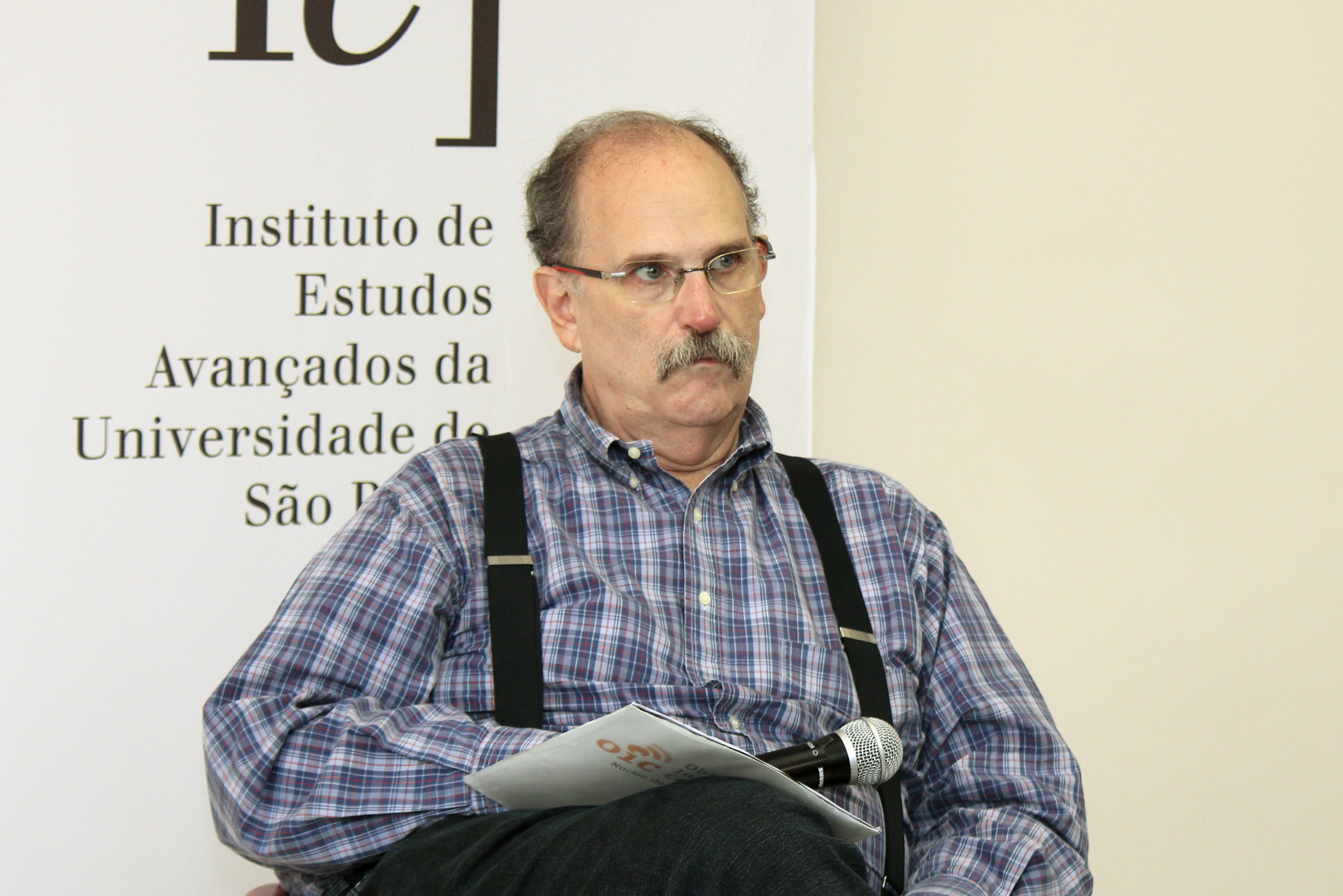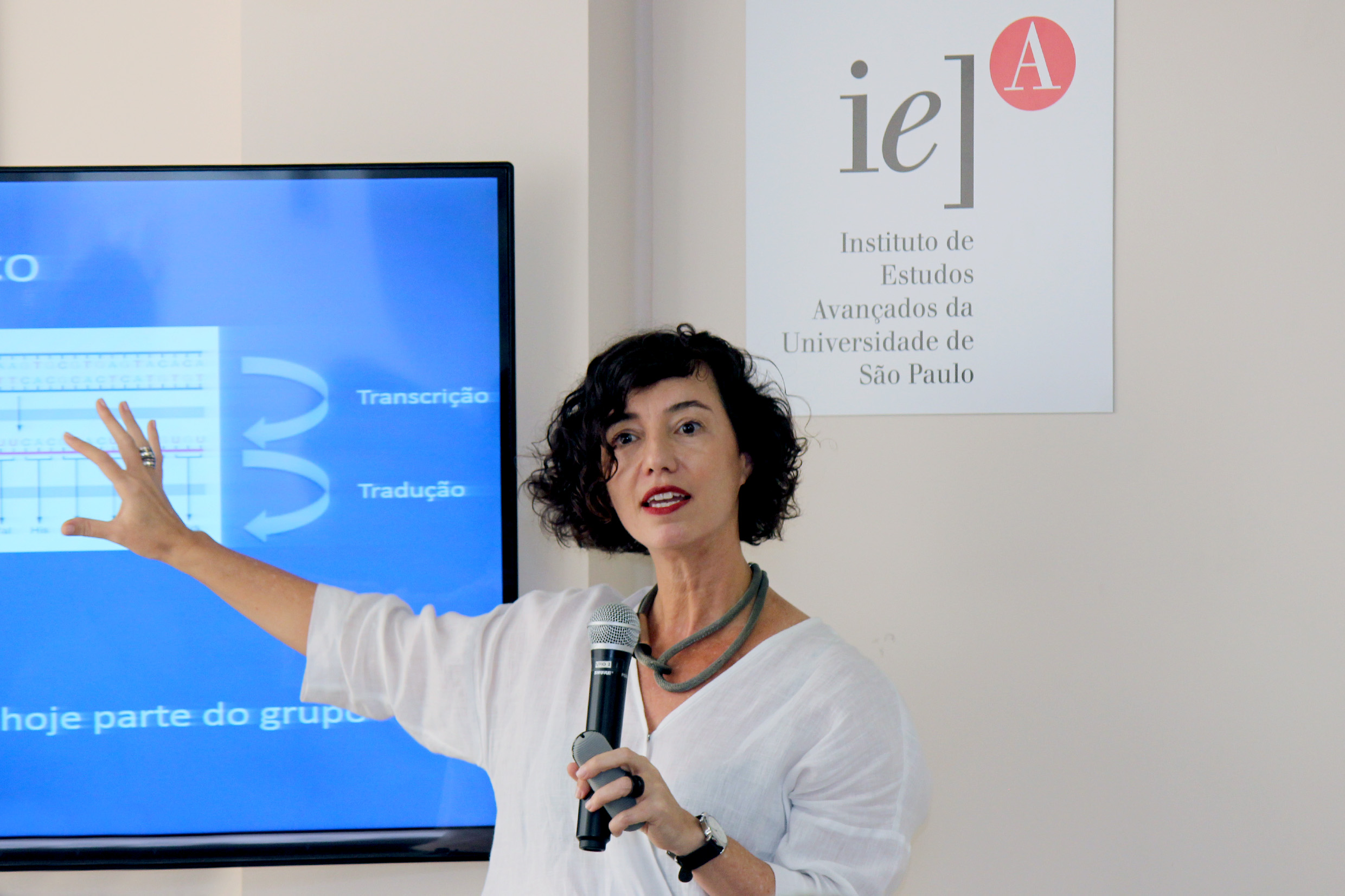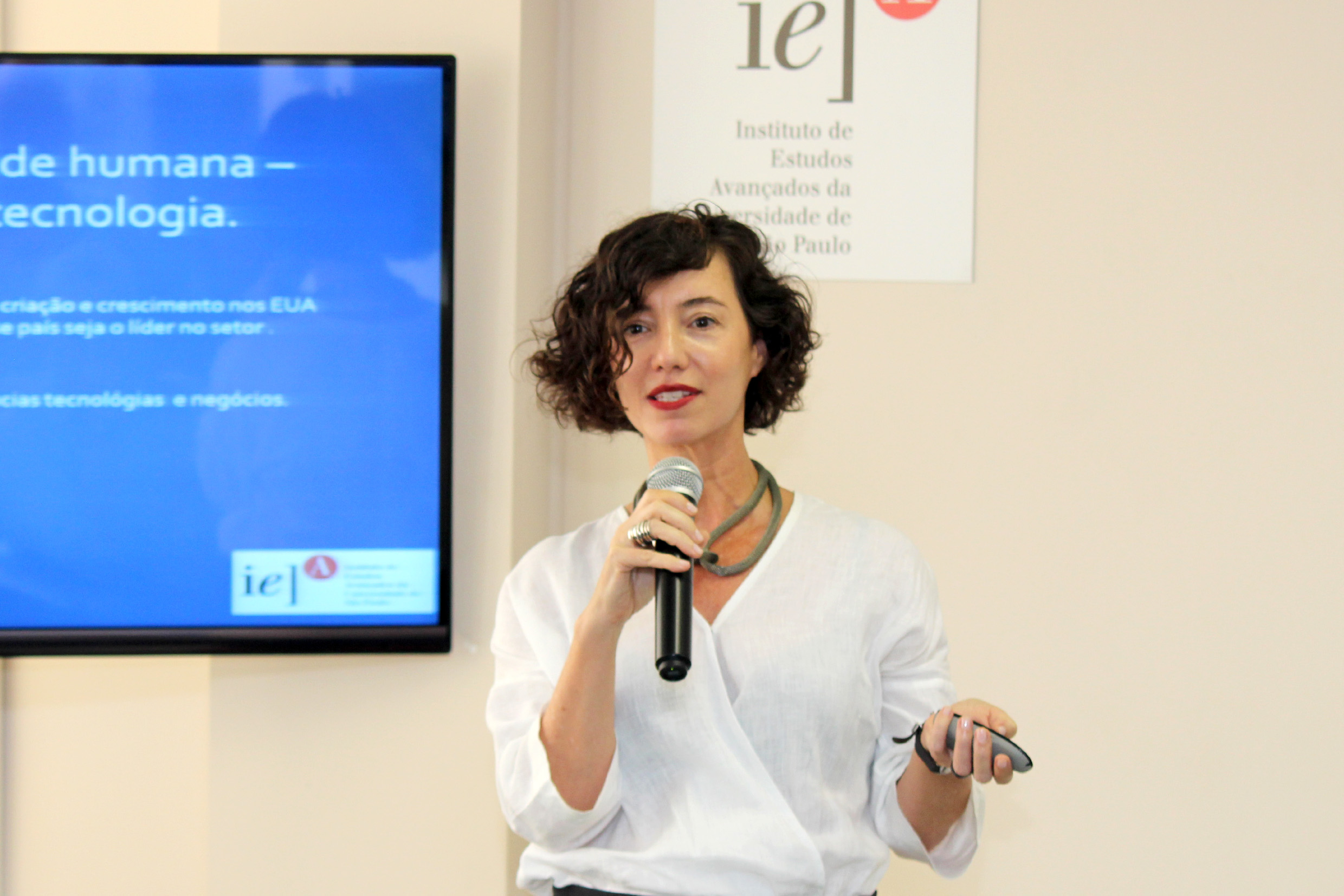 Glauco Arbix abre o evento e apresenta a expositora, Denise Golgher