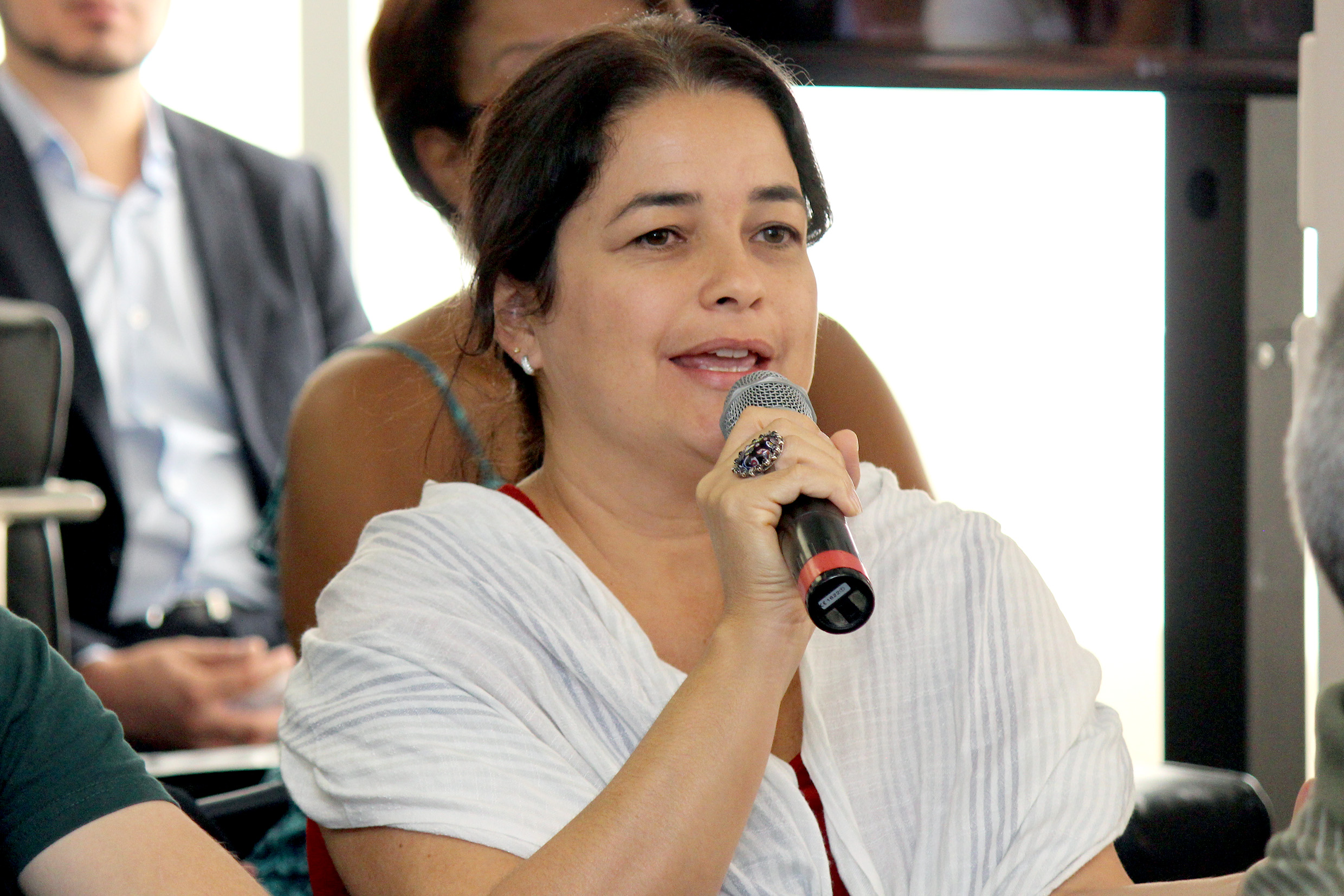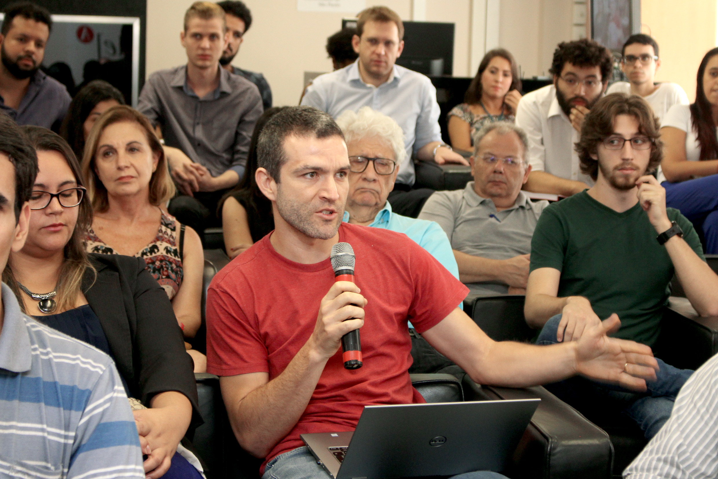 Participante do público faz perguntas durante o debate
