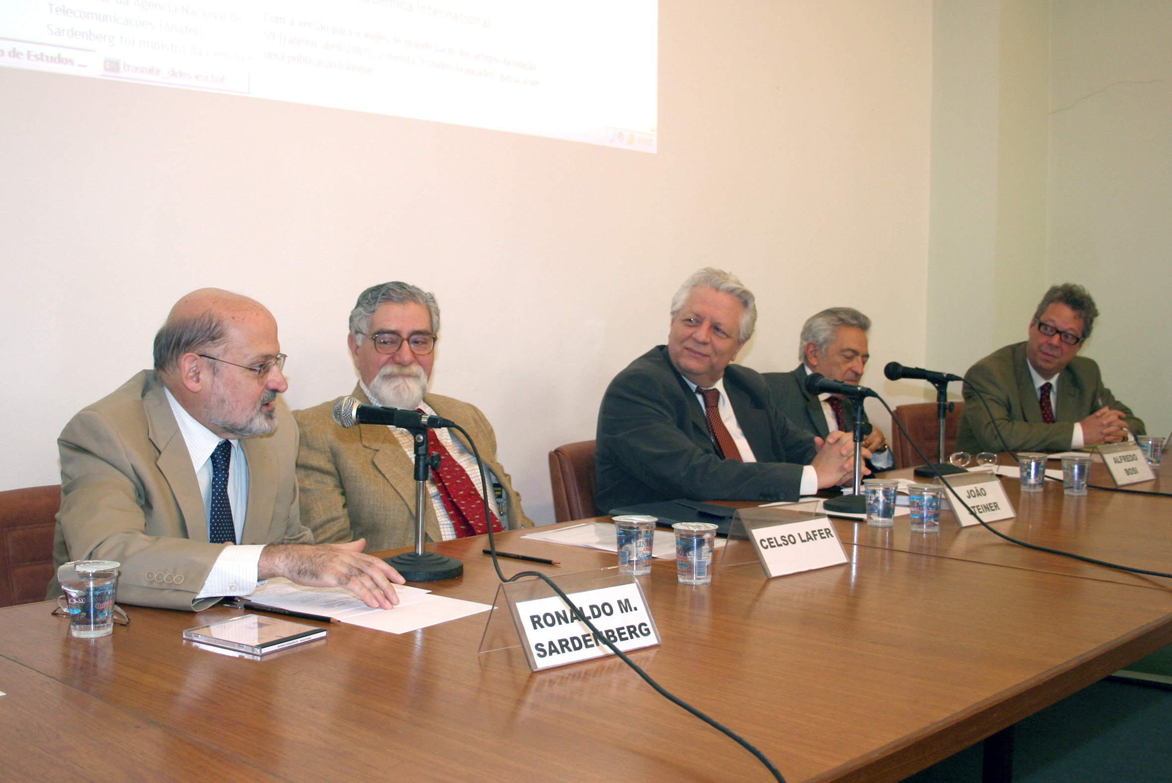 Ronaldo Mota Sardenberg, Celso Lafer, João Steiner, Alfredo Bosi e Matthew Shirts
