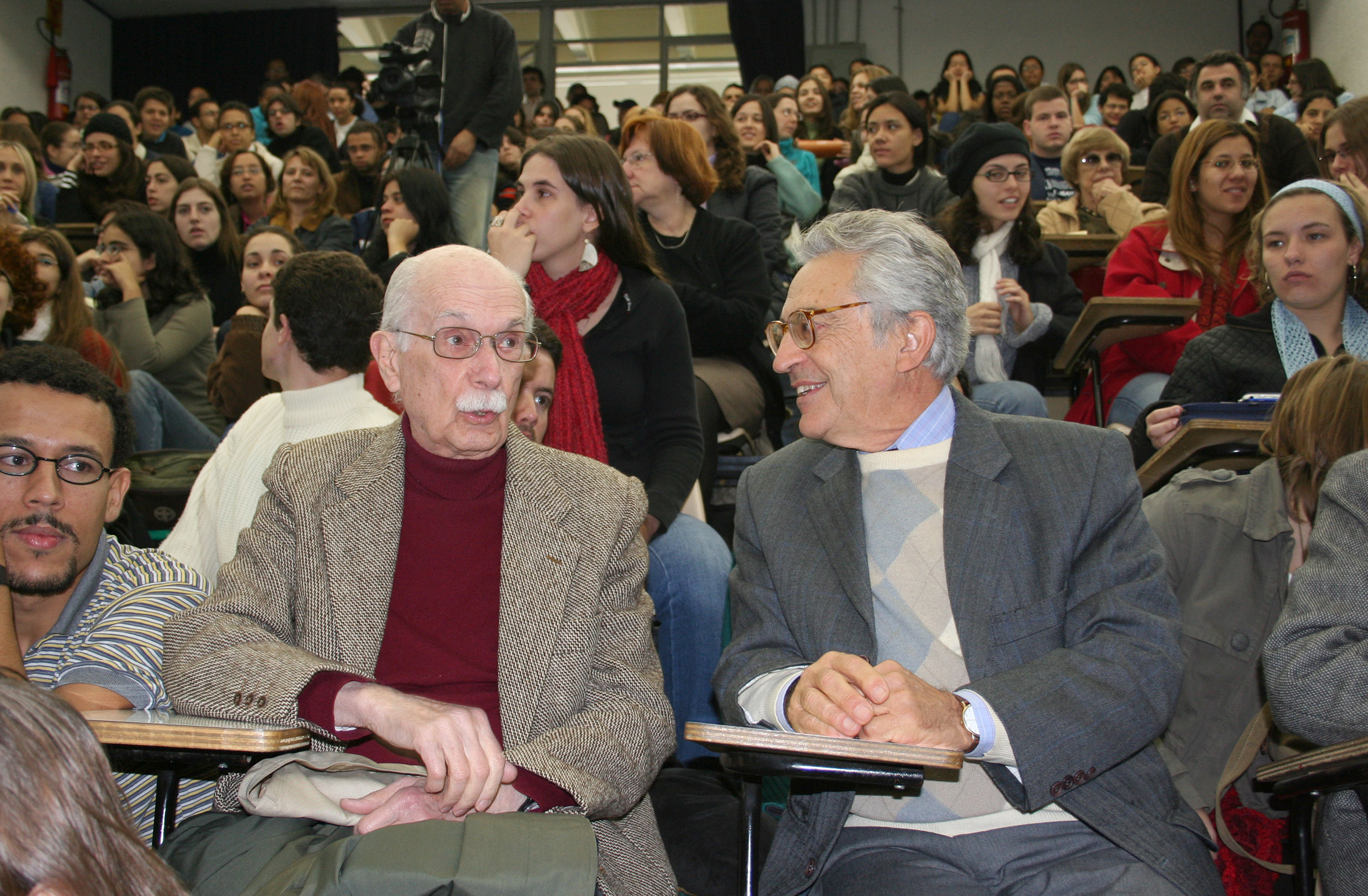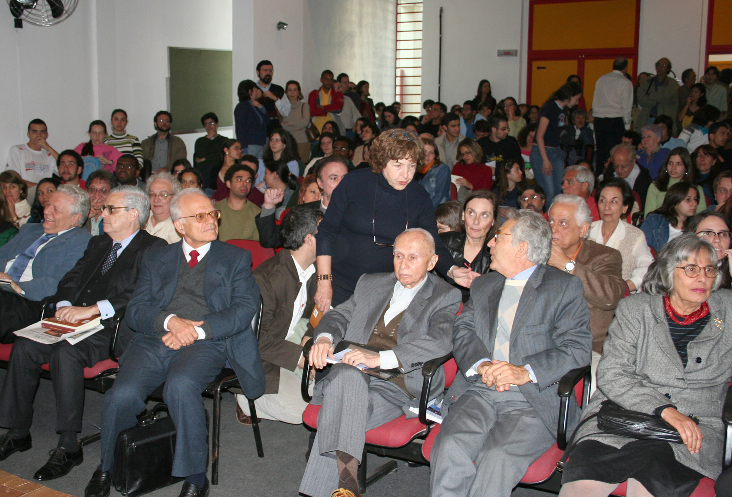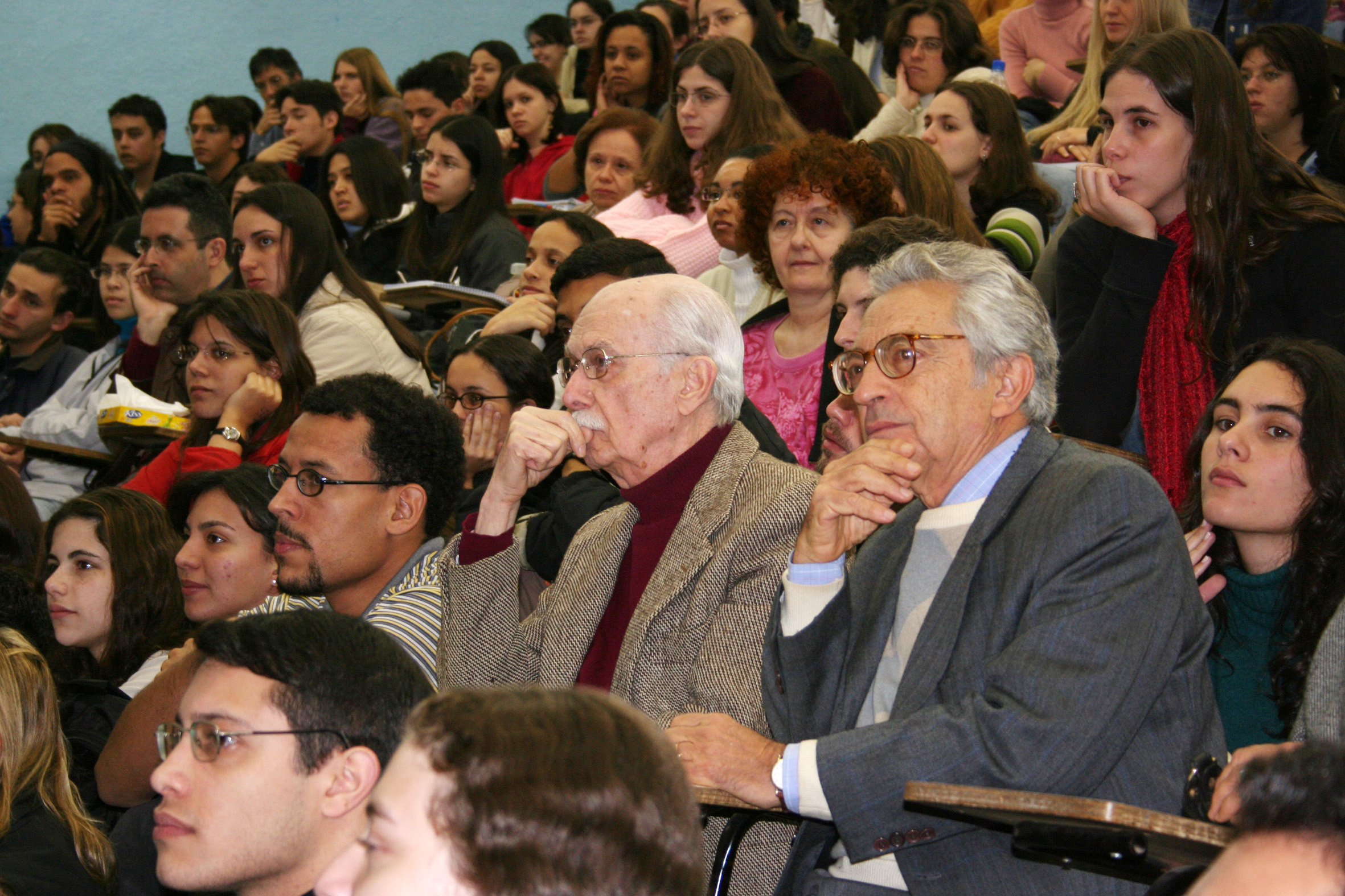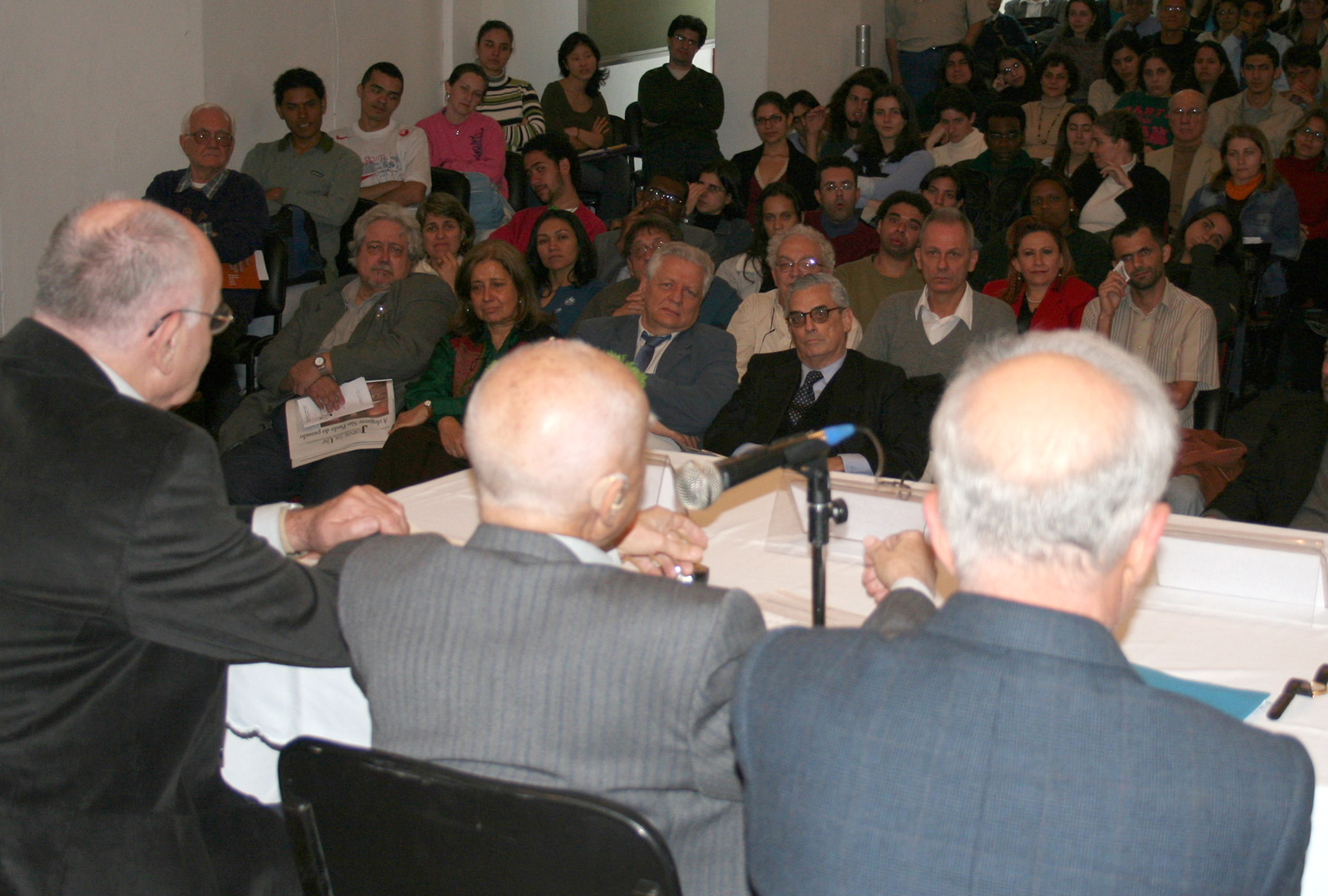 João Steiner, Geraldo Forbes, Fábio Konder Comparato, Jacob Gorender, Alfredo Bosi e Ecléa Bosi, na platéia do evento