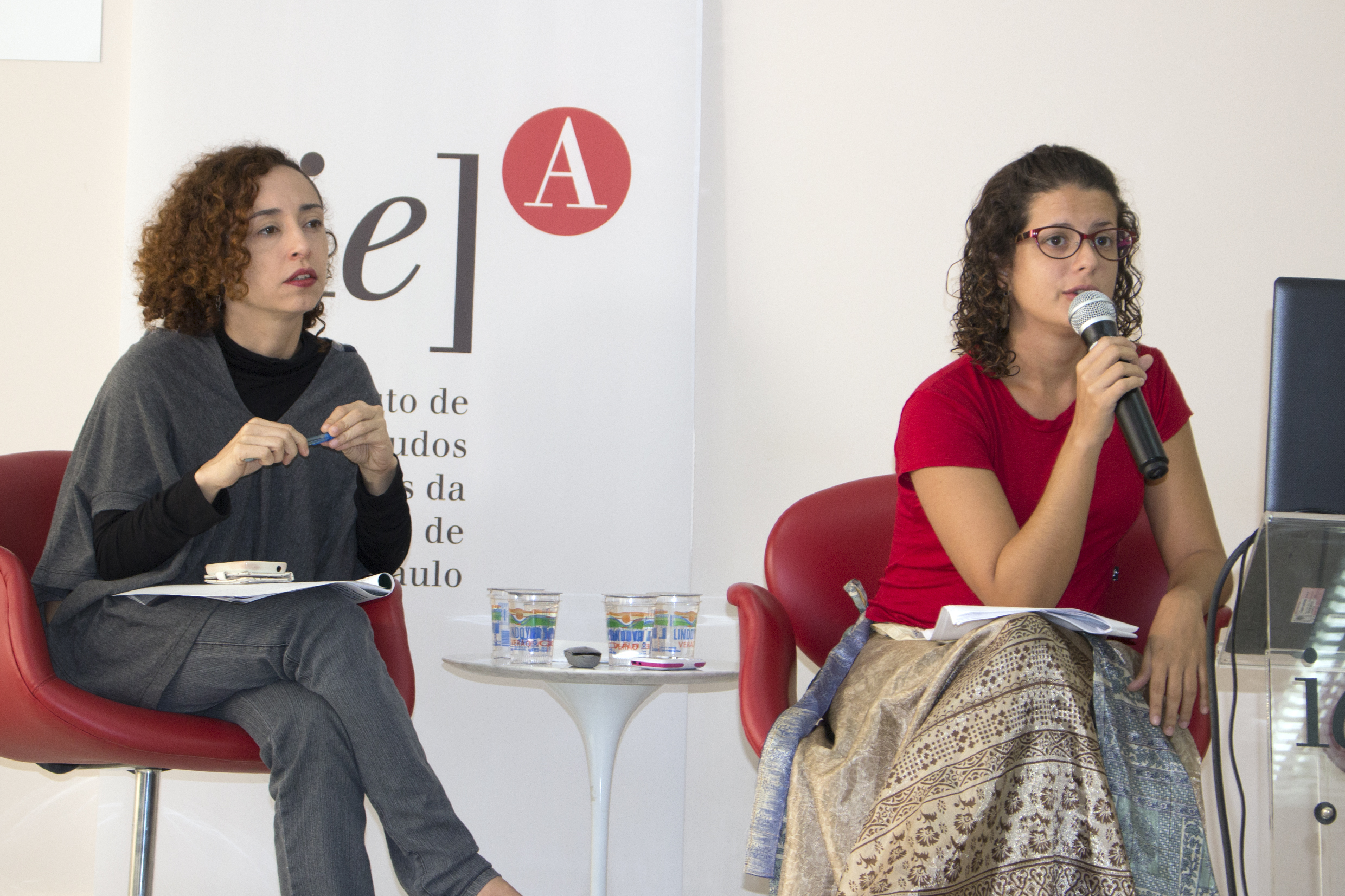 Carla Moura e Jane Ramirez aguardam perguntas do público