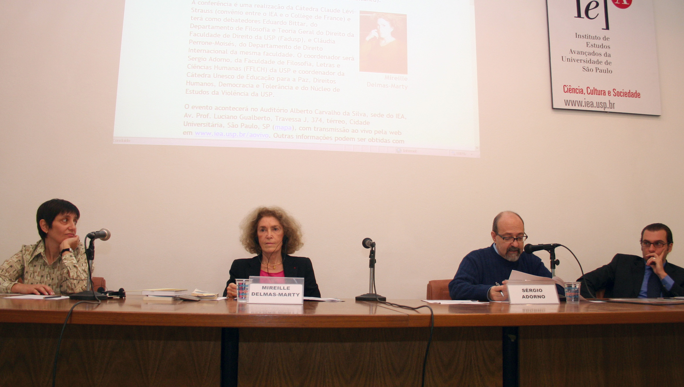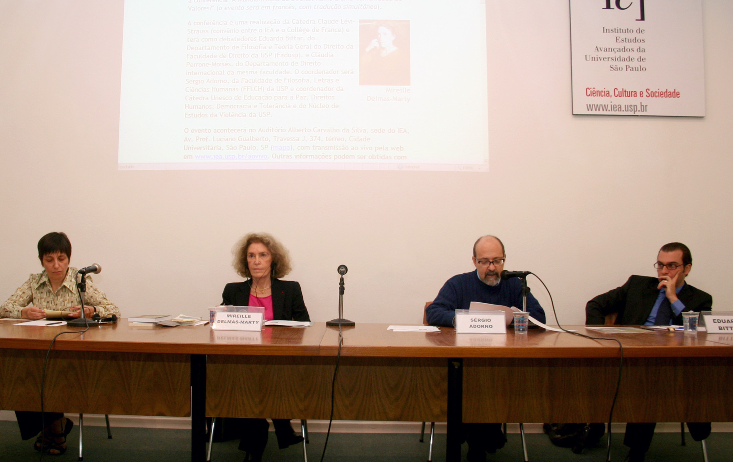 Cláudia Perrone-Moisés, Mireille Delmas-Marty, Sérgio Adorno e Eduardo Bittar