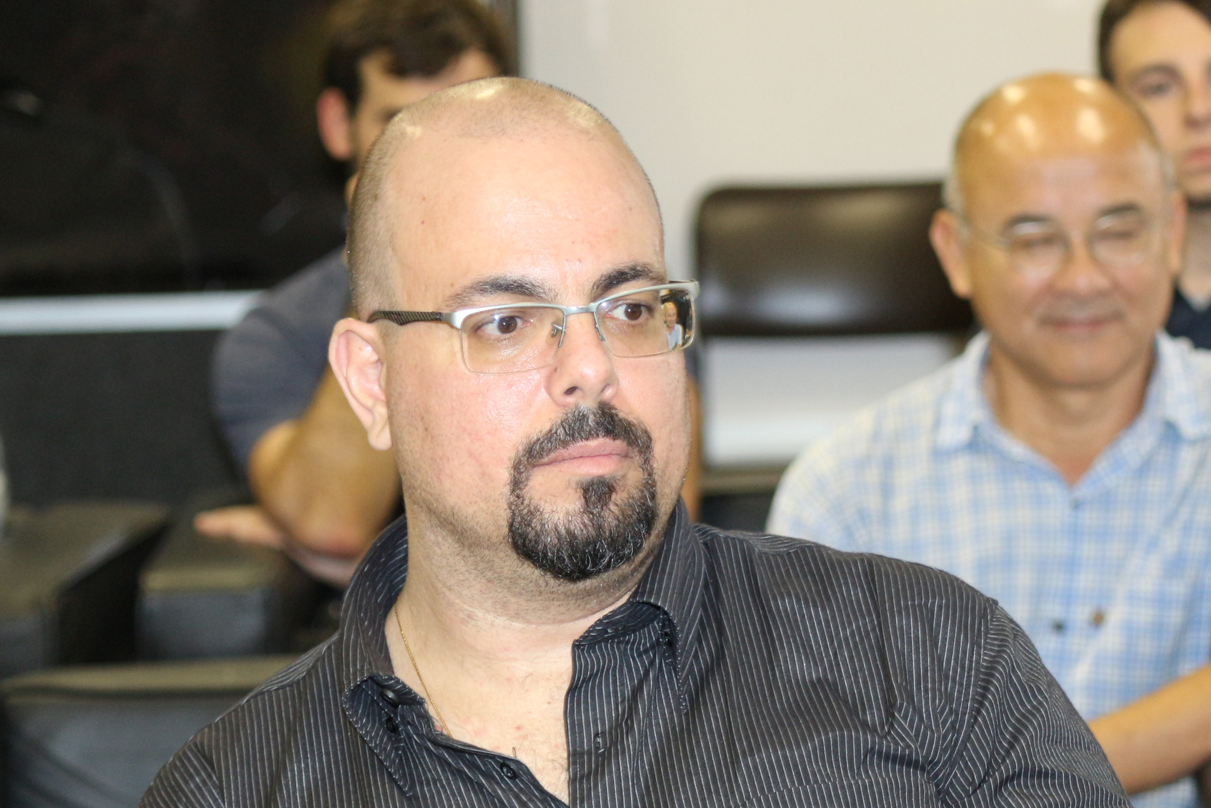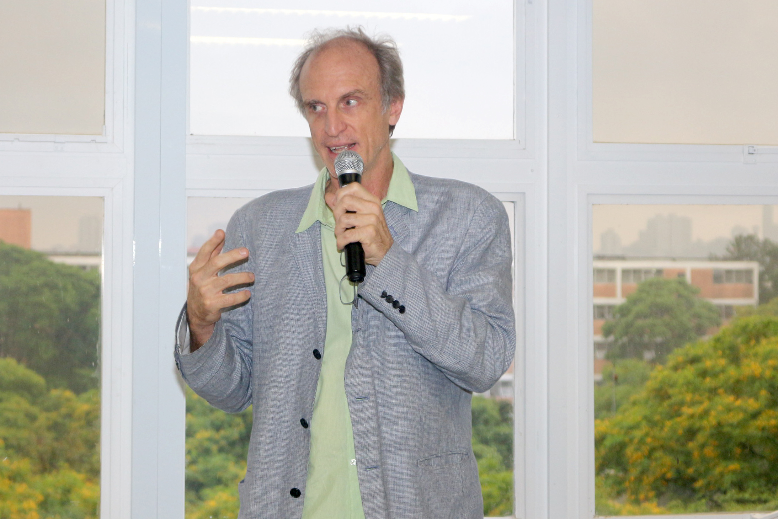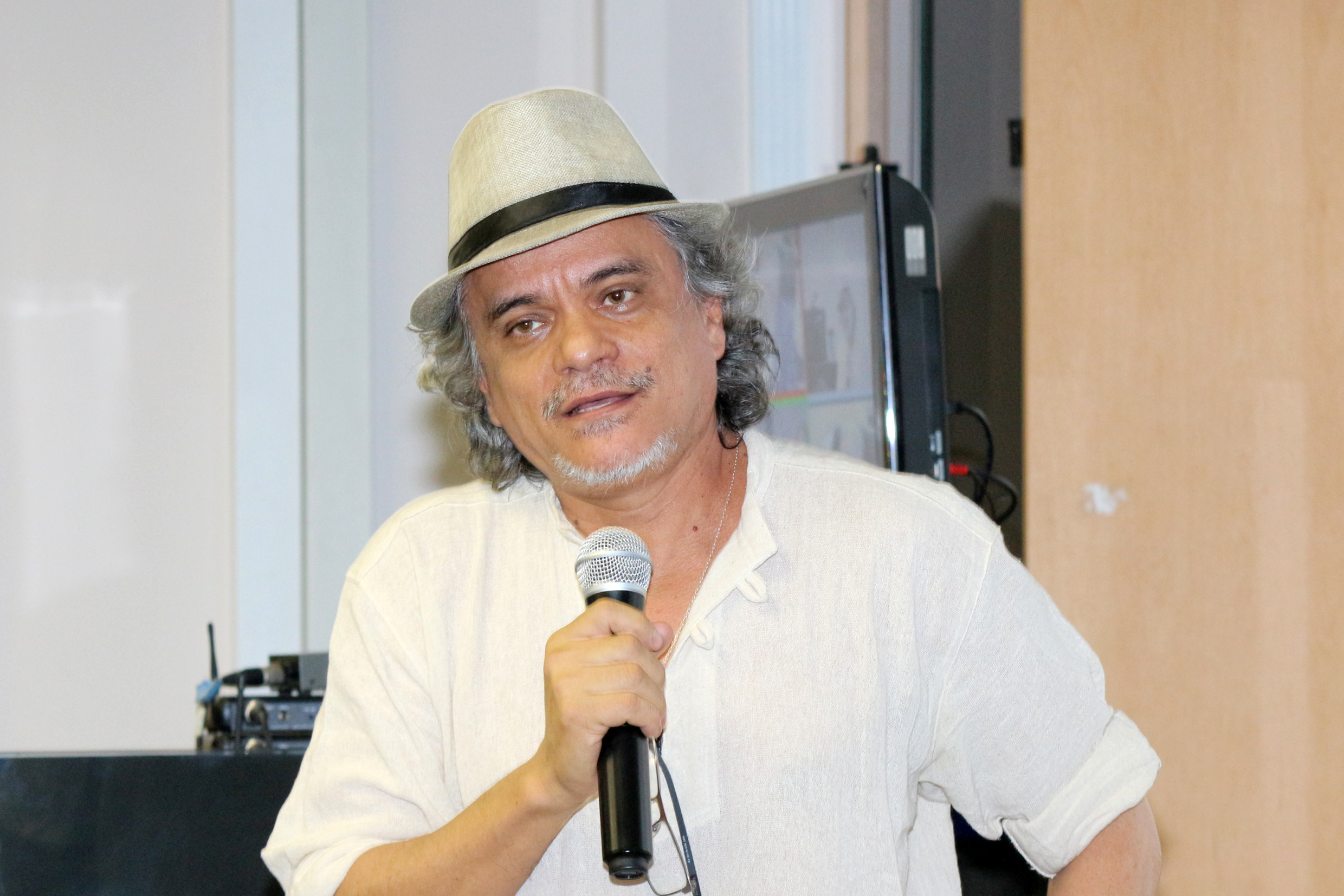 Martin Grossmann apresenta os expositores, Álvaro de Campos, Larissa Leite, Sylvia Dantas, João Alberto Alves Amorim e Geraldo de Campos