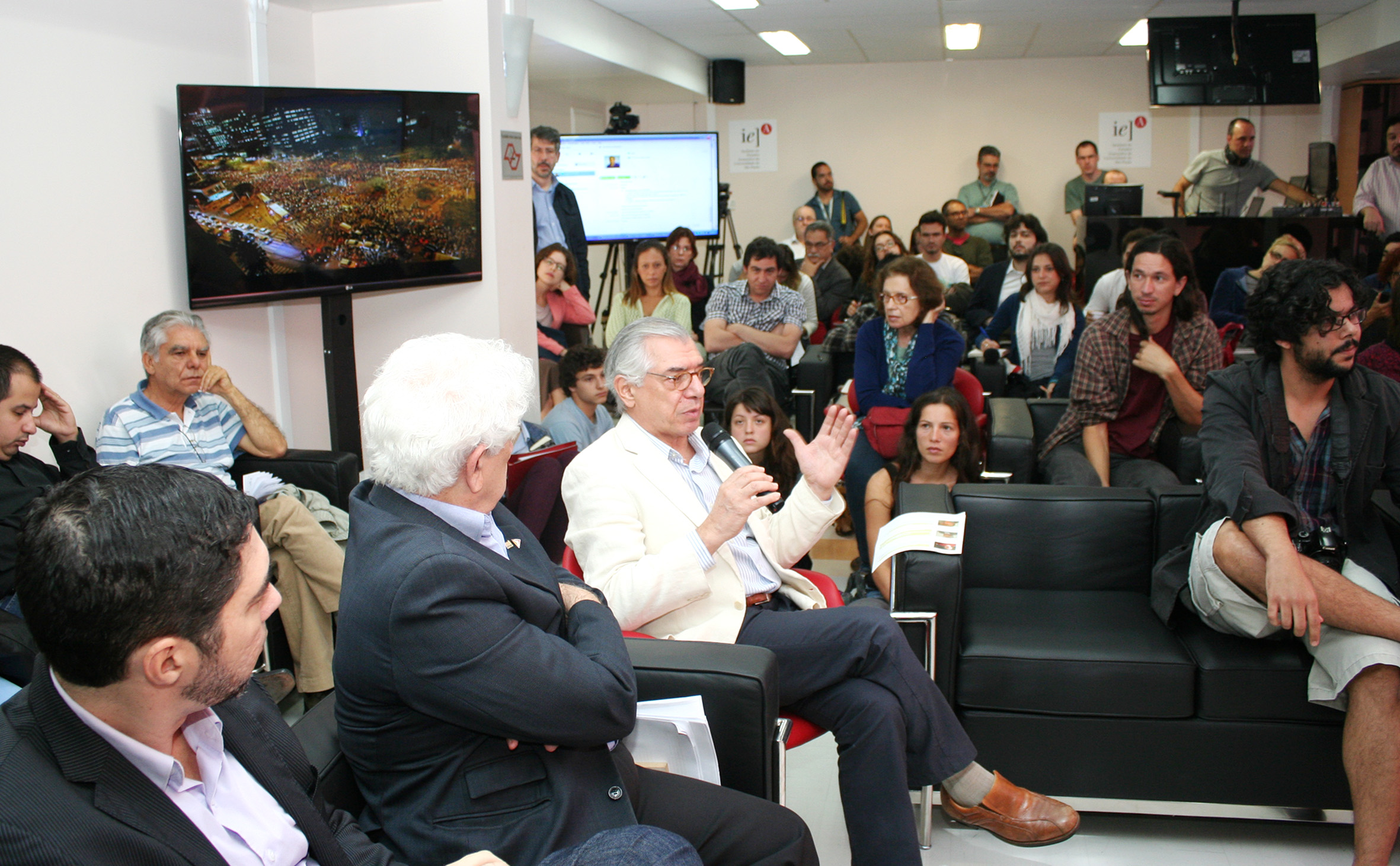 Sérgio Adorno, Guilherme Ary Plonski e Bernardo Sorj via Skype