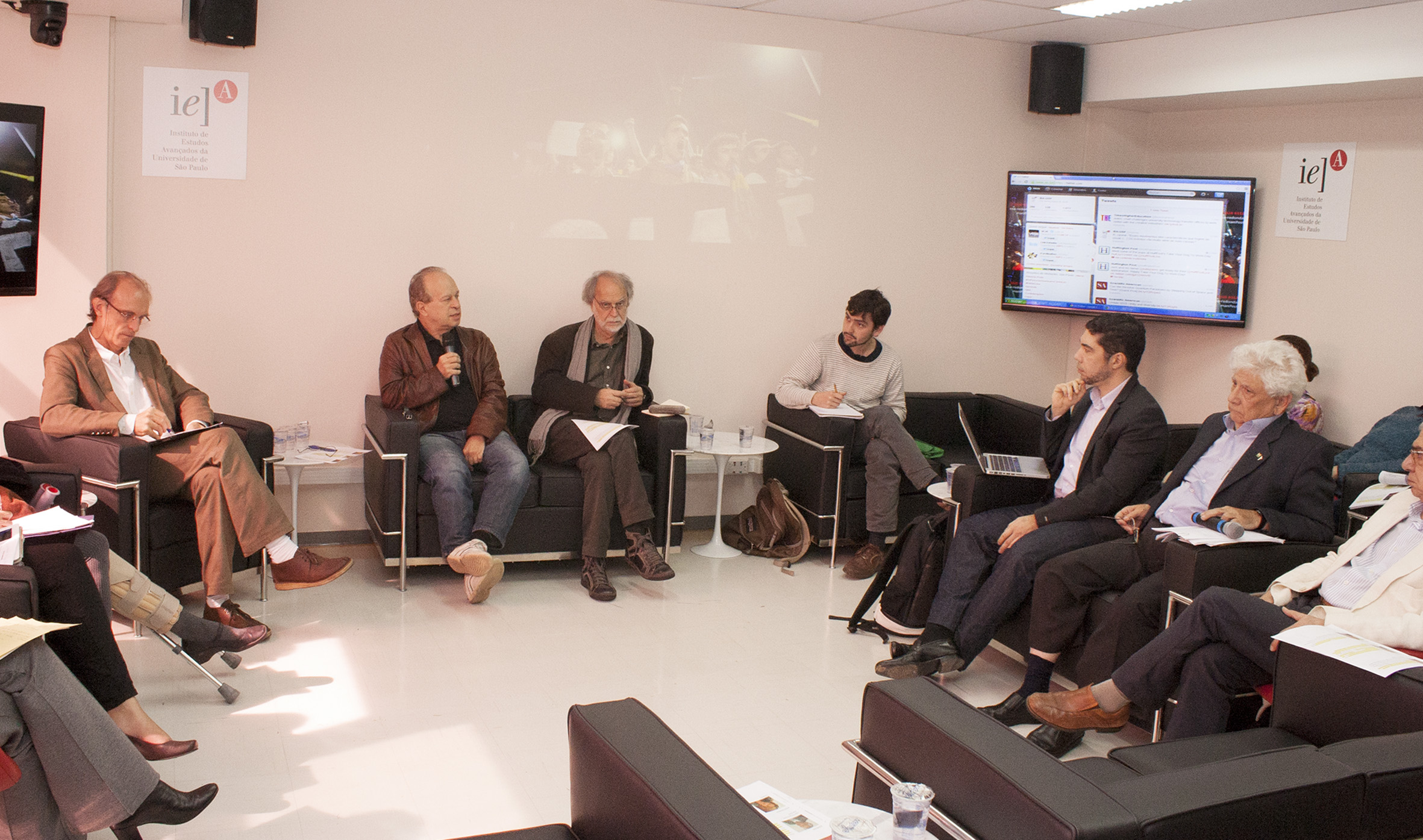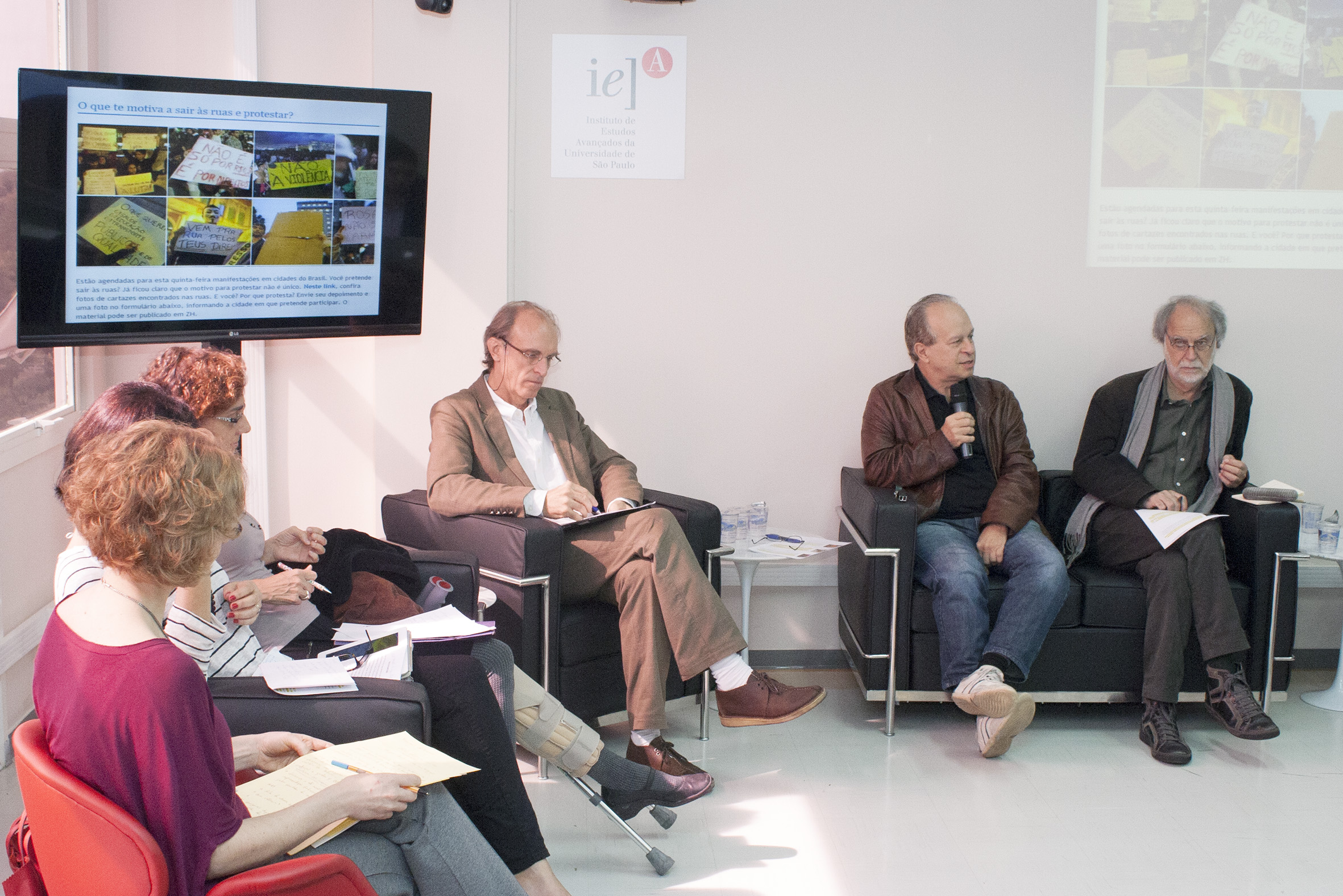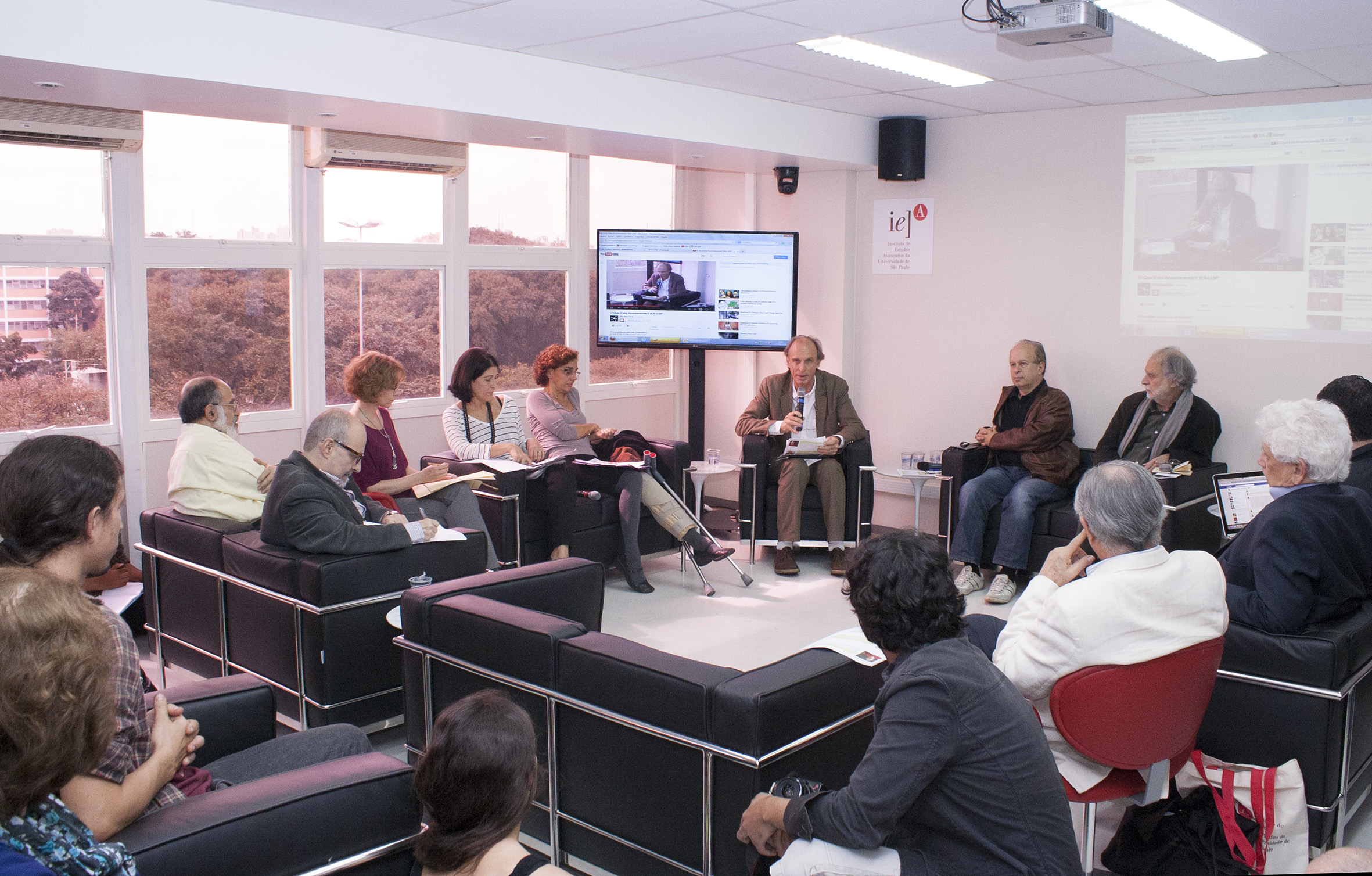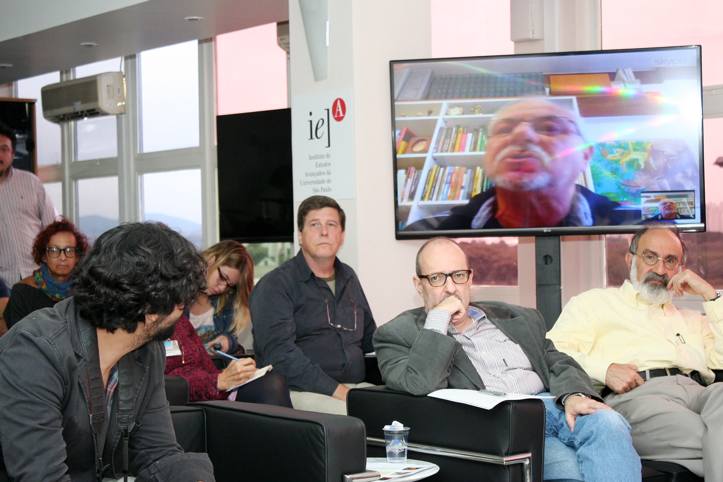 Jorge Luiz Campos, Sérgio Adorno, Guilherme Ary Plonski e Bernardo Sorj via Skype