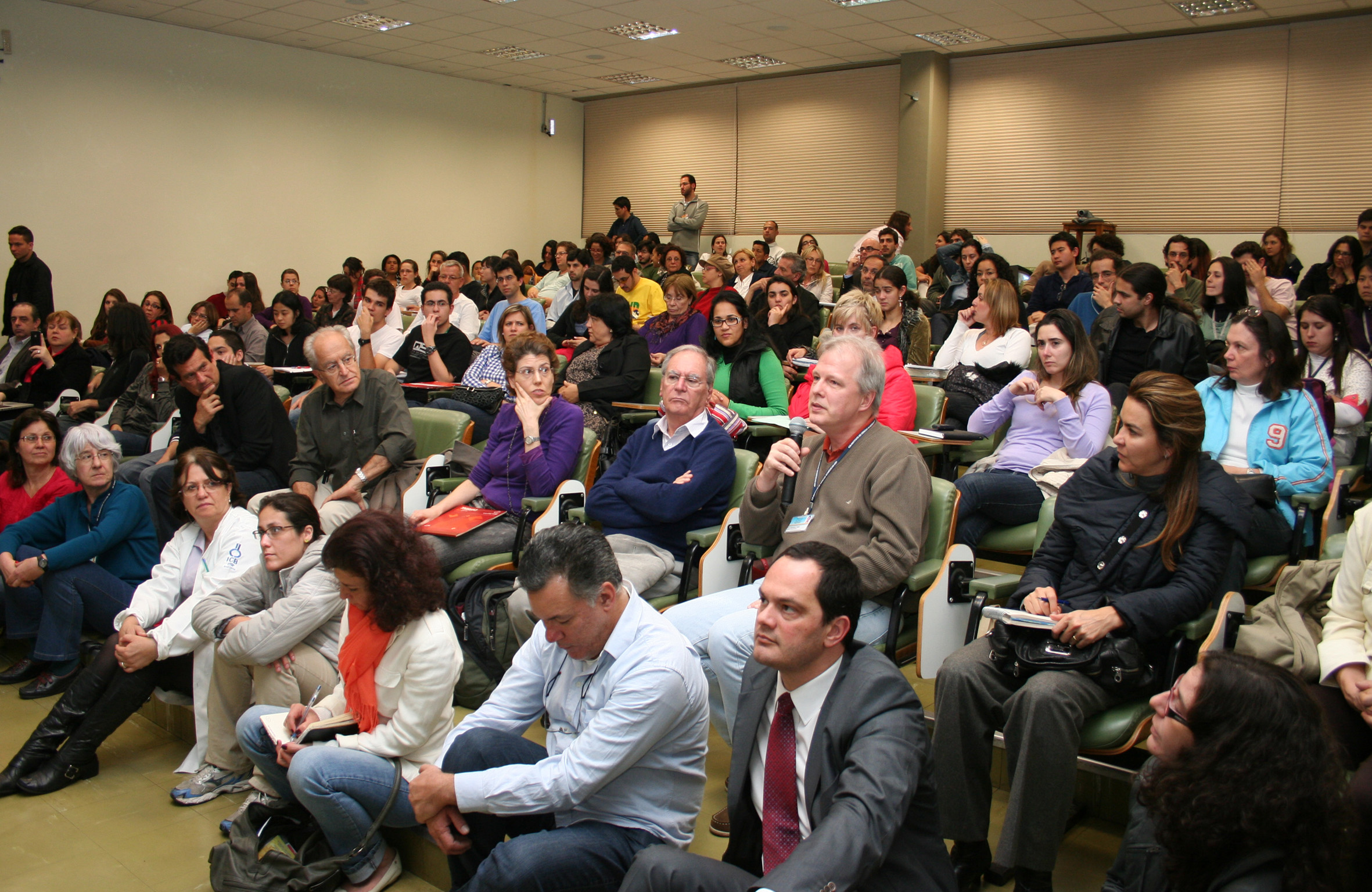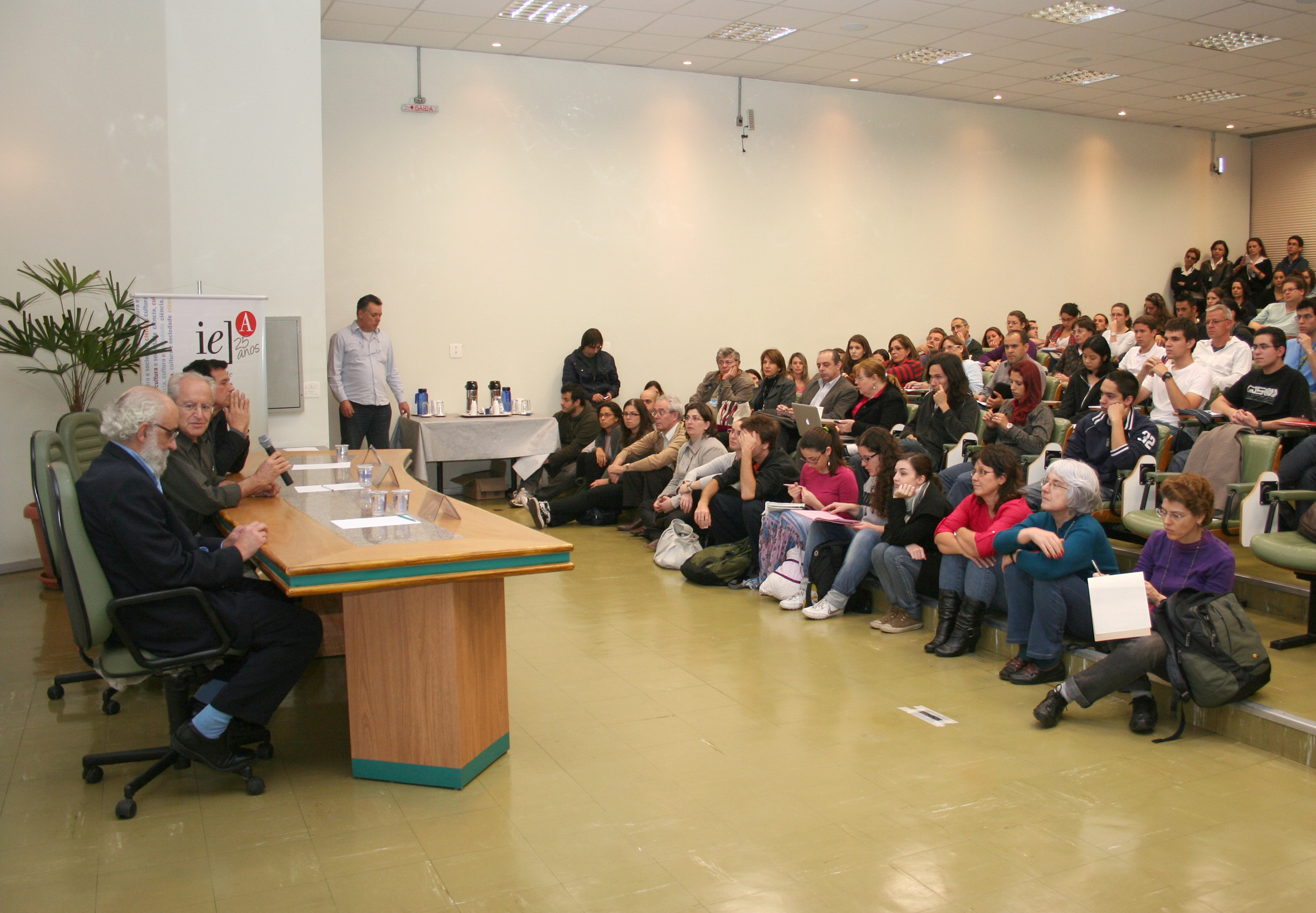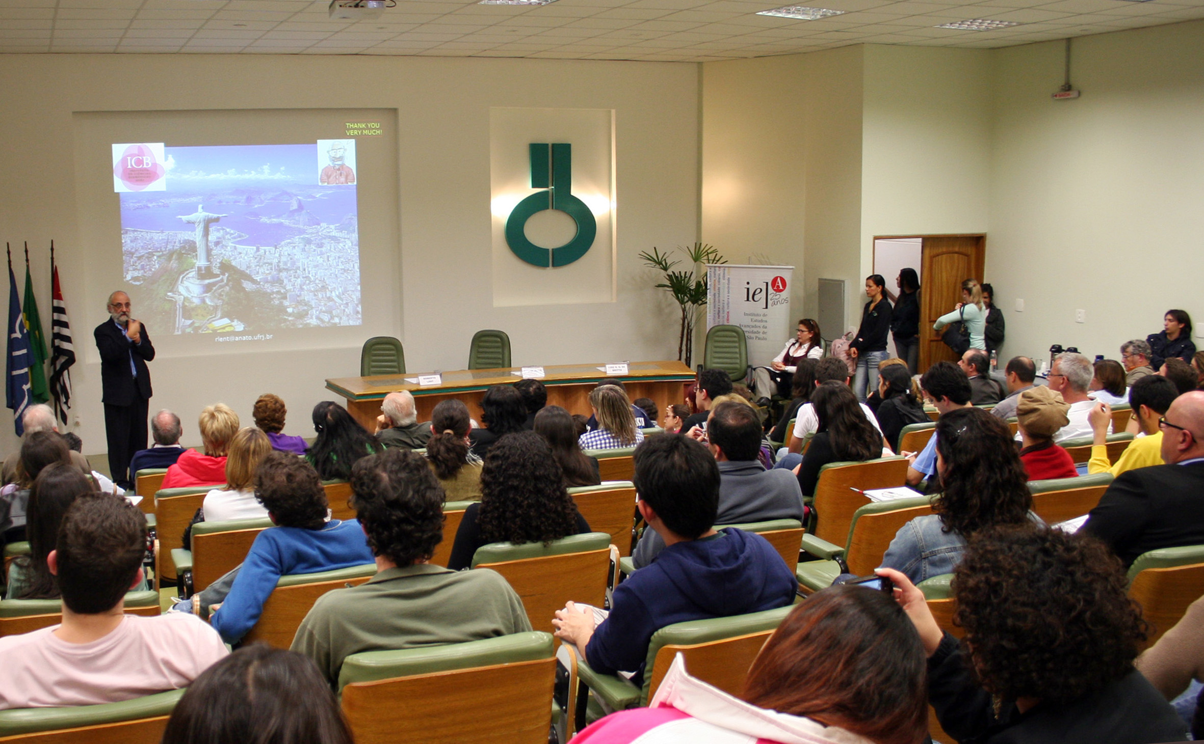 César Ades abre o evento ao lado de Roberto Lent e Luiz Roberto Giorgetti de Brito