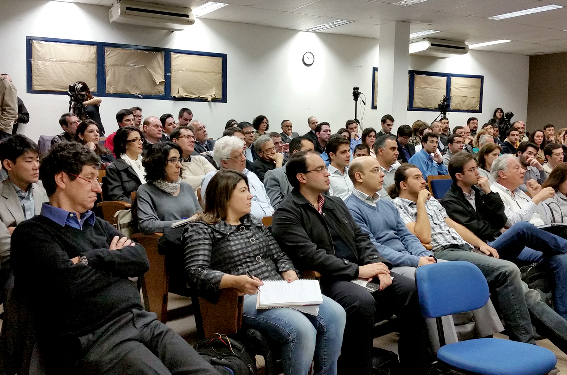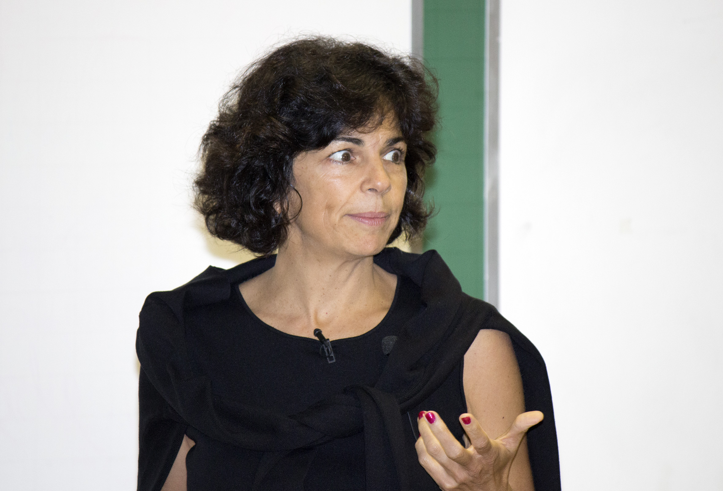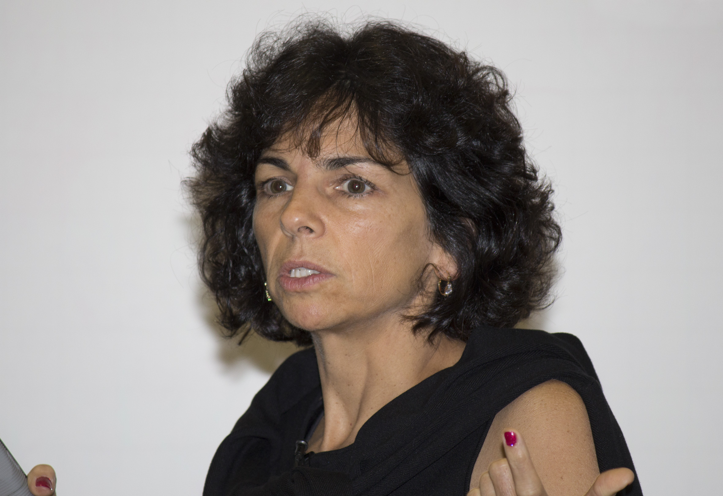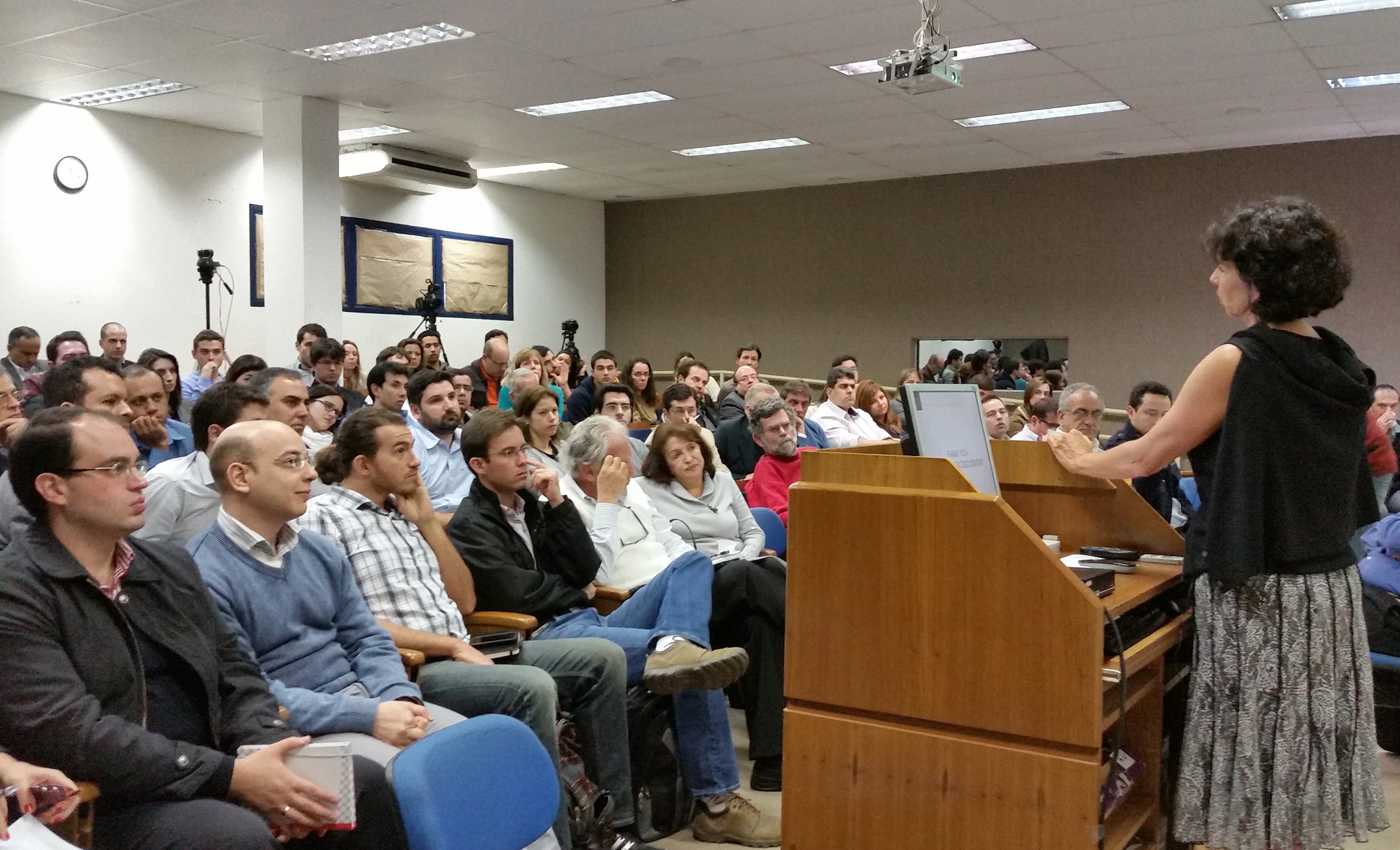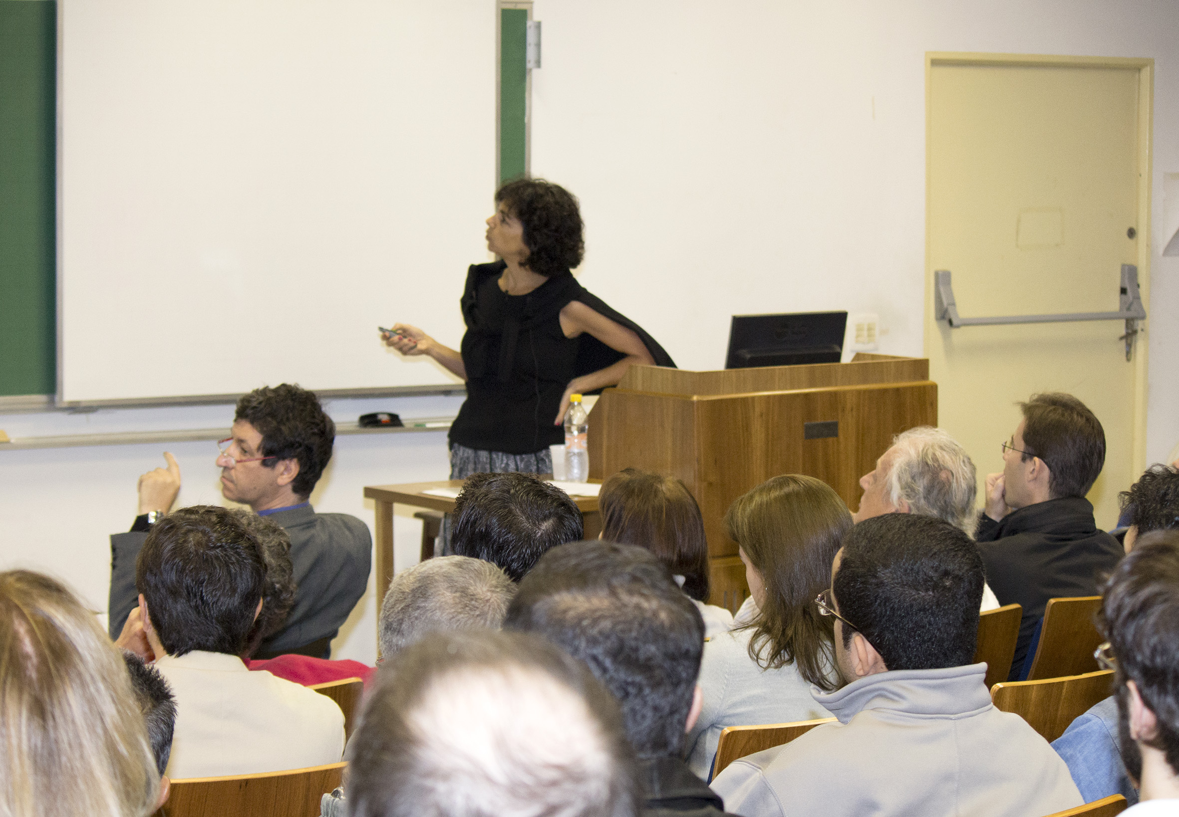 Participante do público debate com a expositora