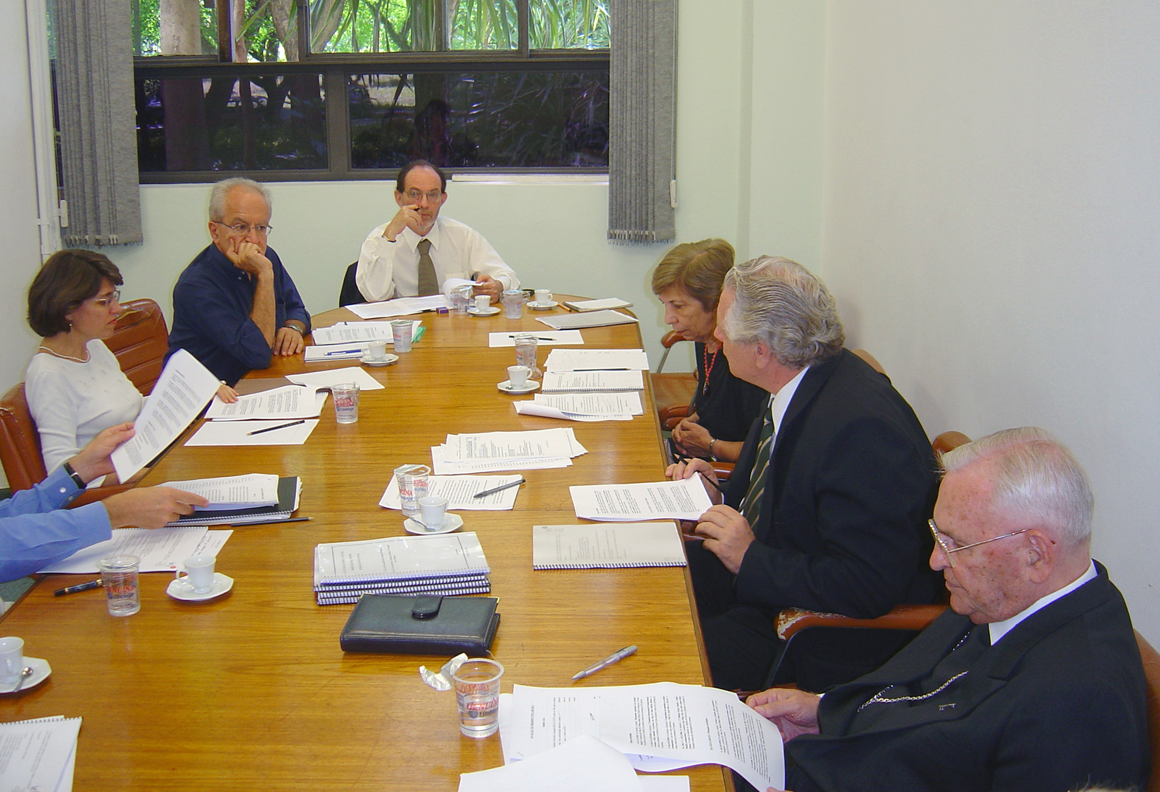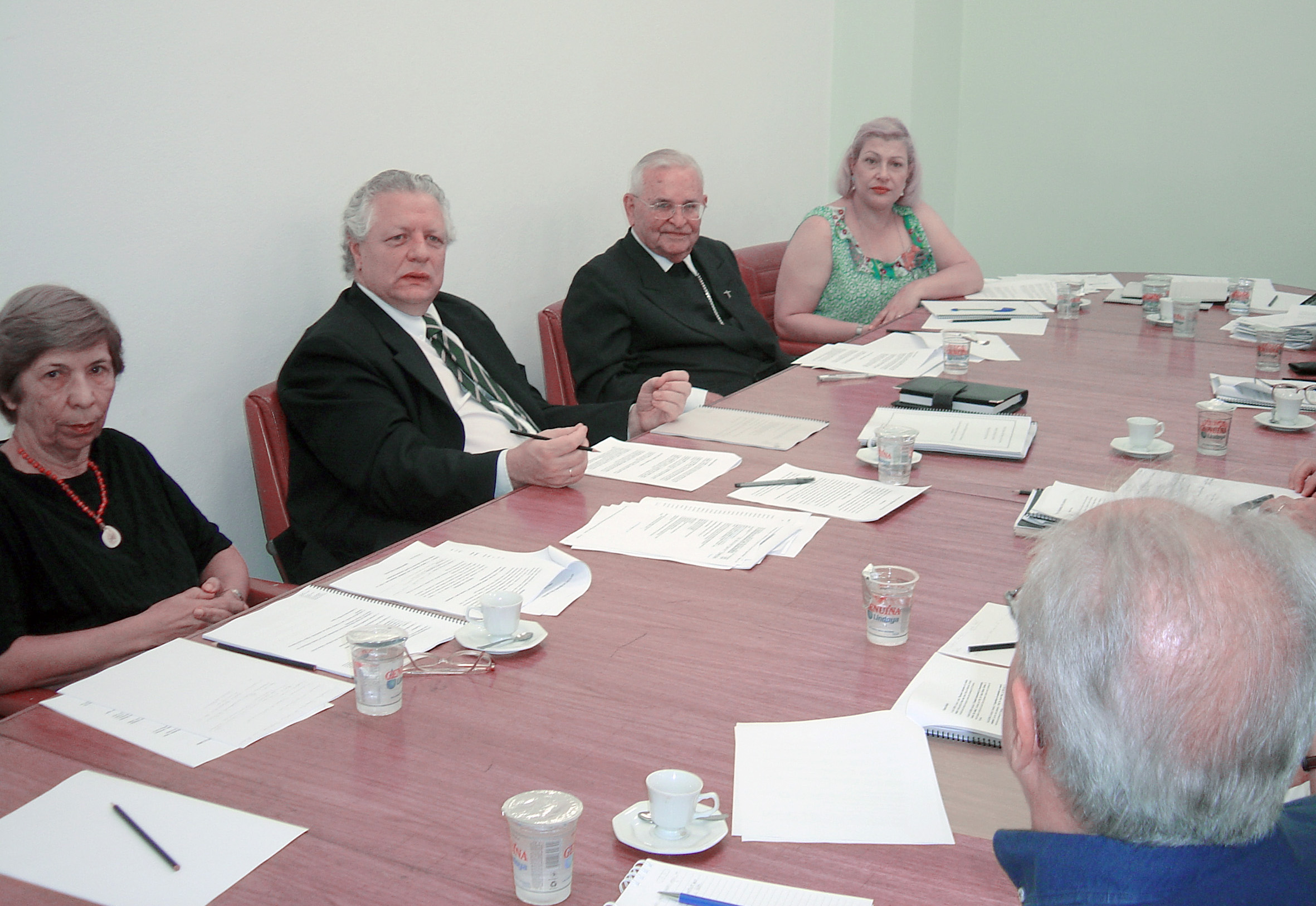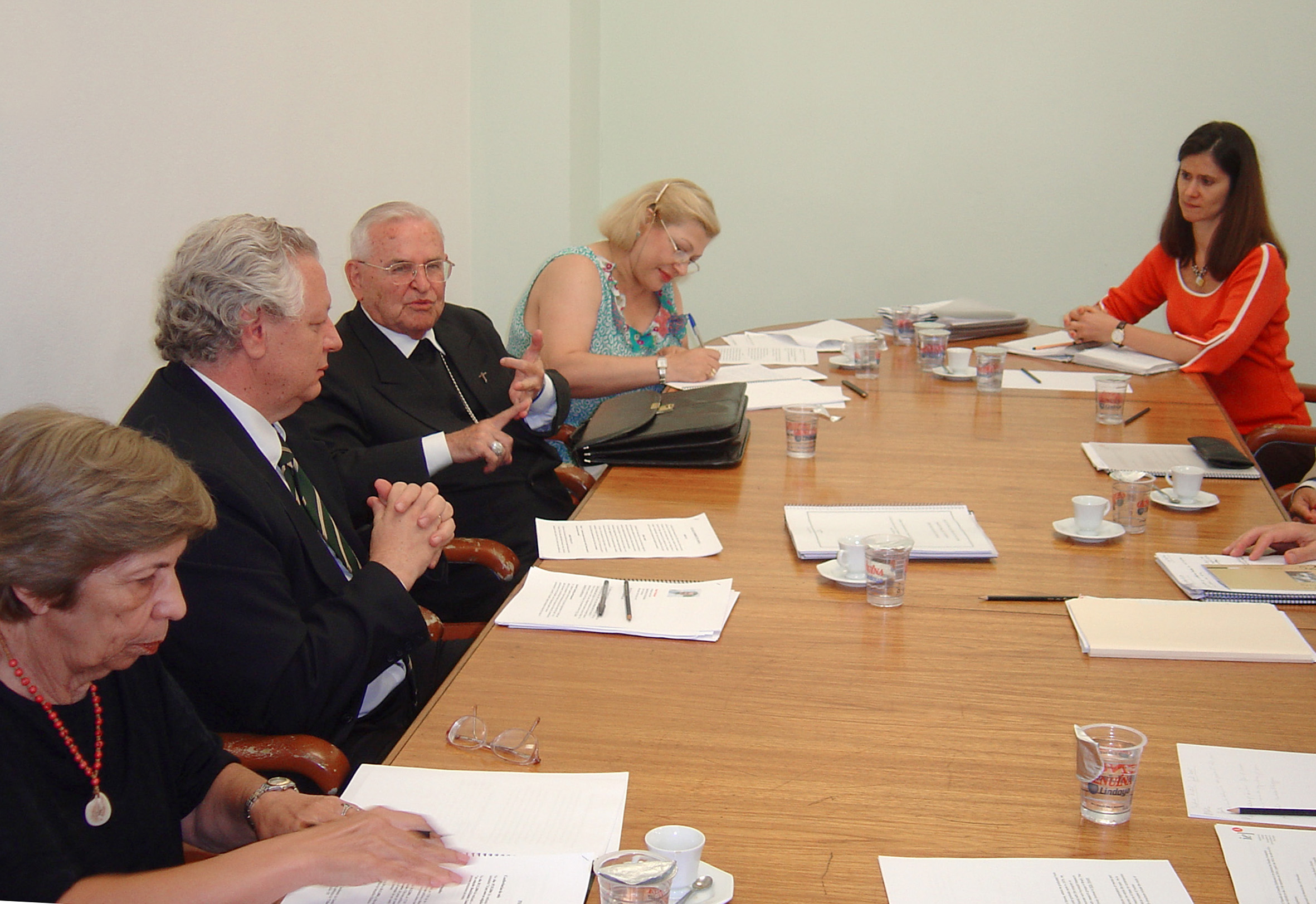 a partir da esquerda, Ana Lydia Sawaya, César Ades, Hernan Chaimovich, Yvonne Mascarenhas, João Steiner e Dom Paulo Evaristo Arns
