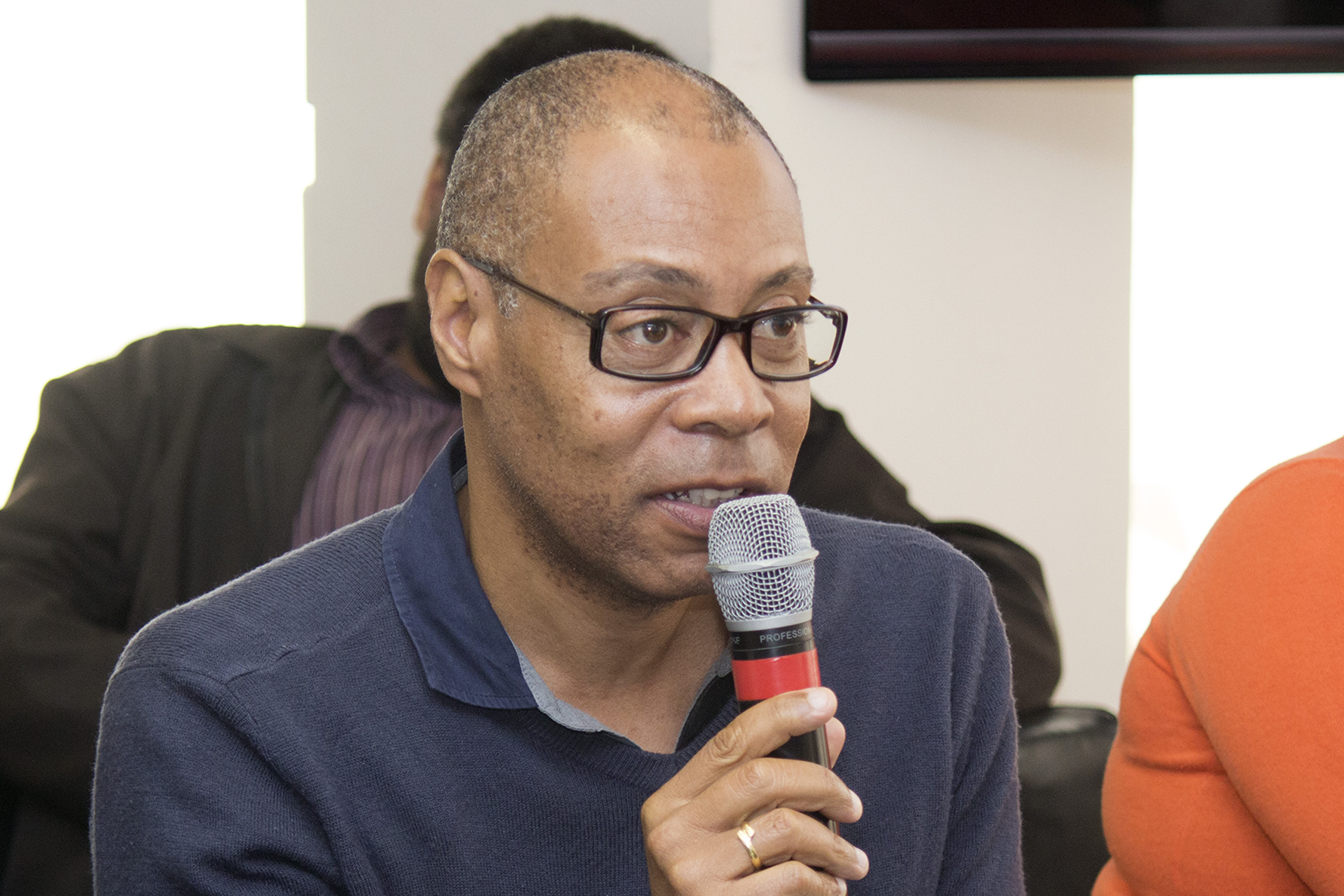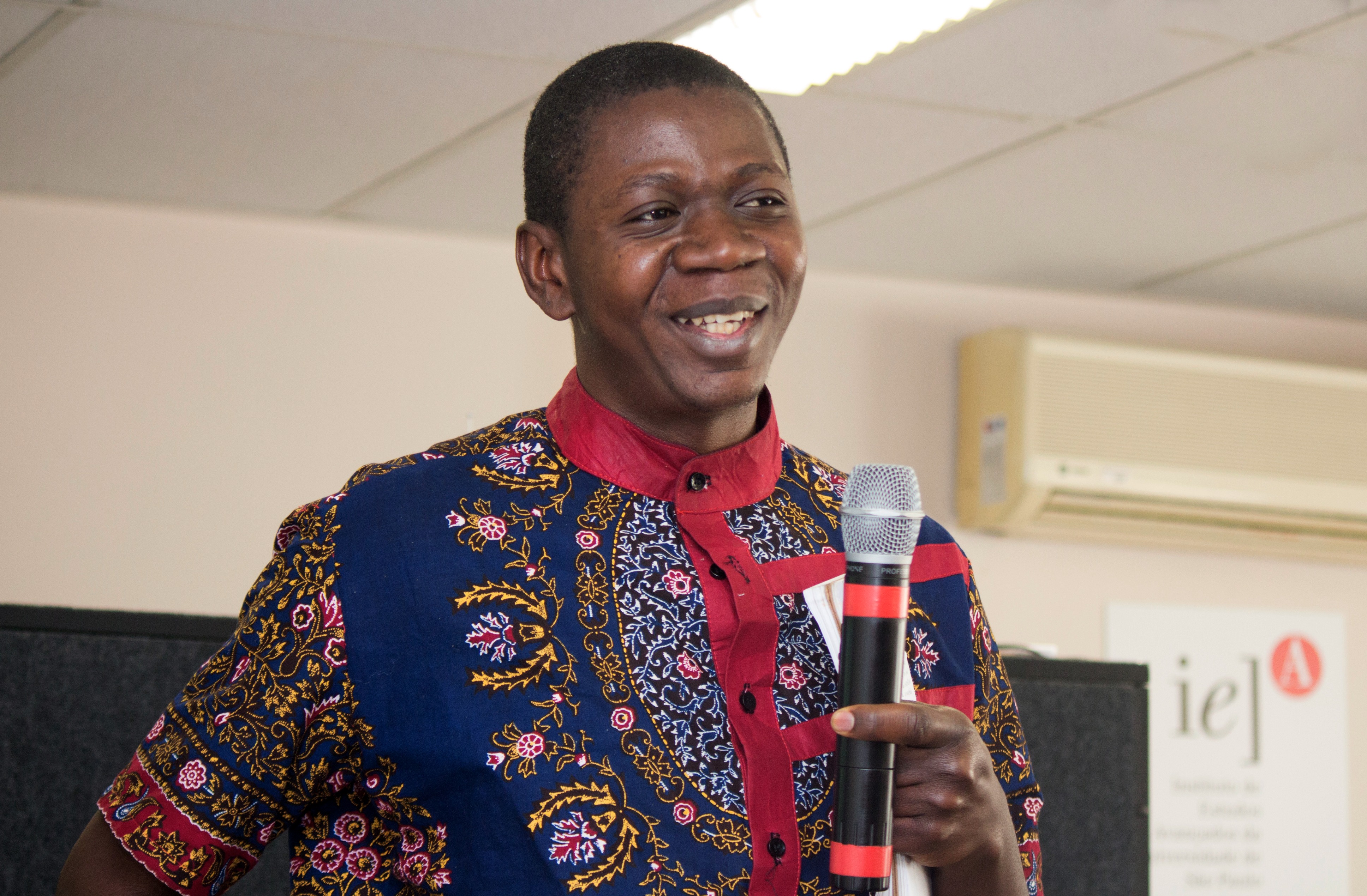 Tresor Mukendi Muteba faz perguntas durante o debate