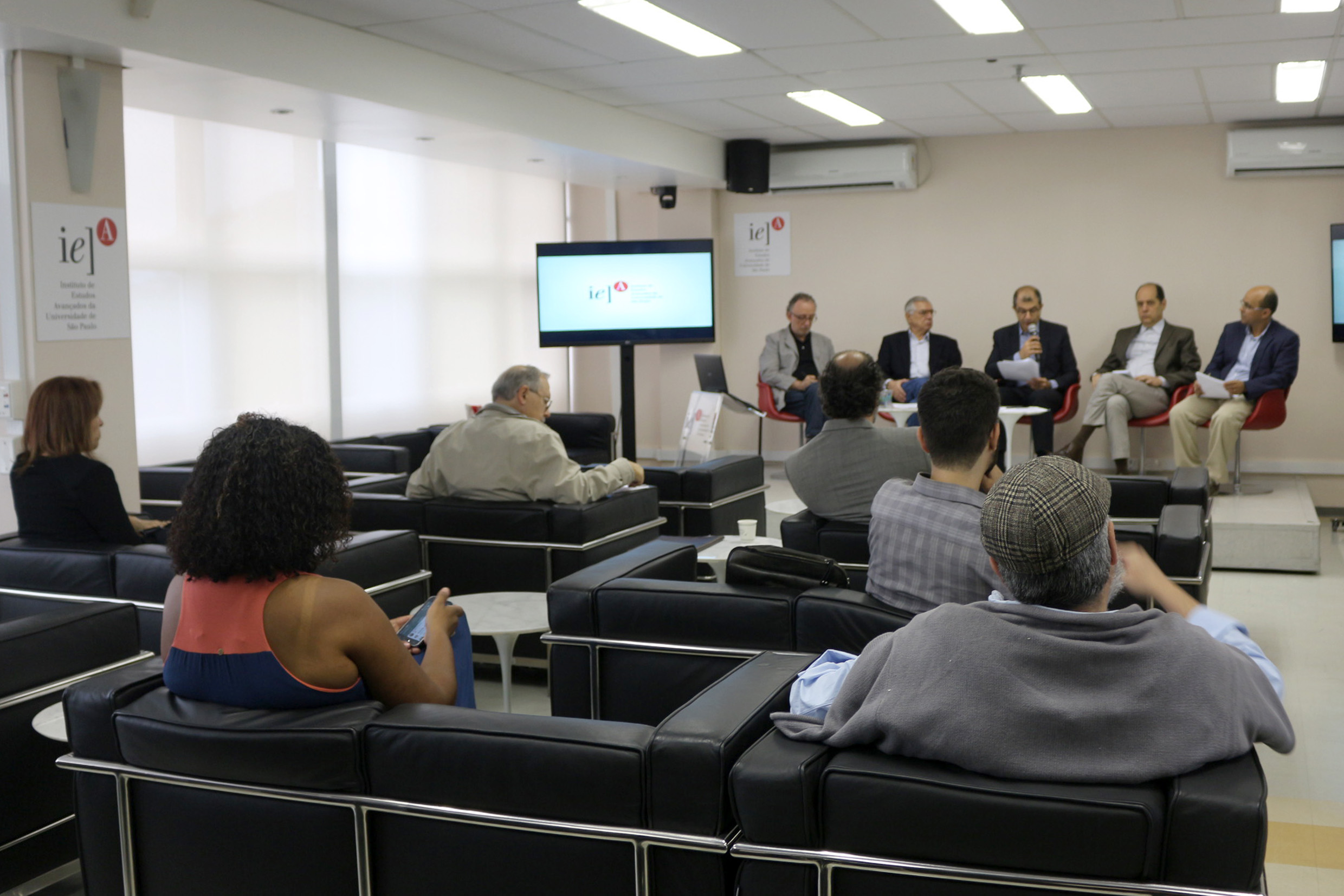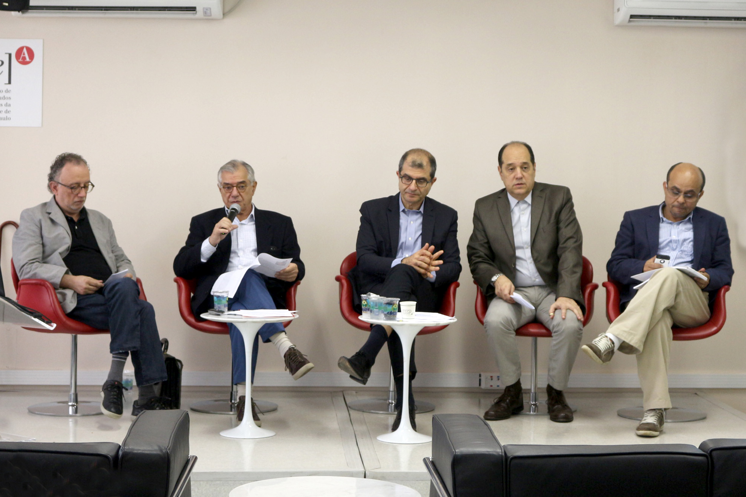 A partir da esquerda, Marco Aurélio Nogueira, José Álvaro Moisés, Ricardo Gandour, Eugenio Bucci e Marco Antonio Carvalho Teixeira
